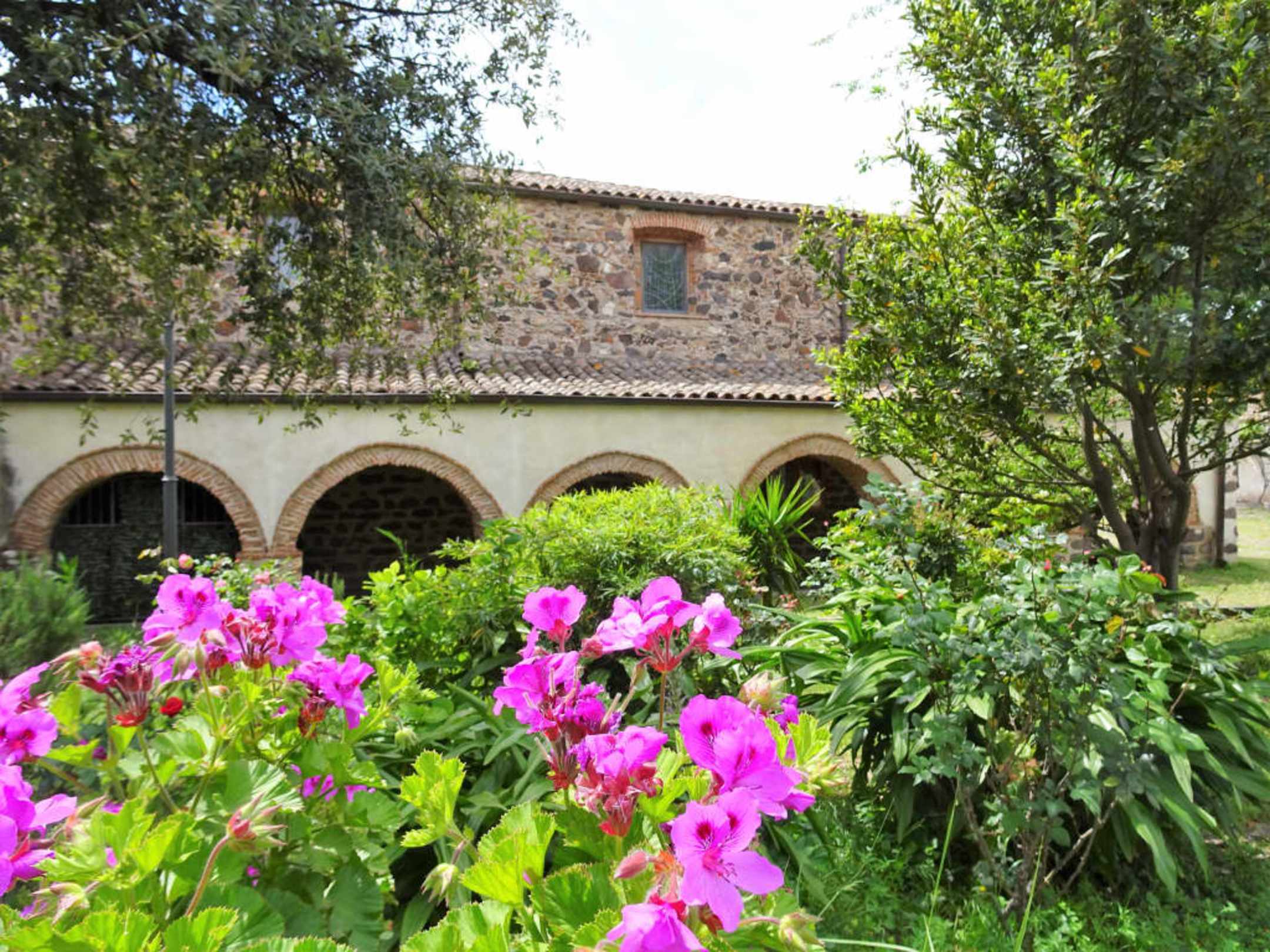 Garten und Säulenhalle der Kirche