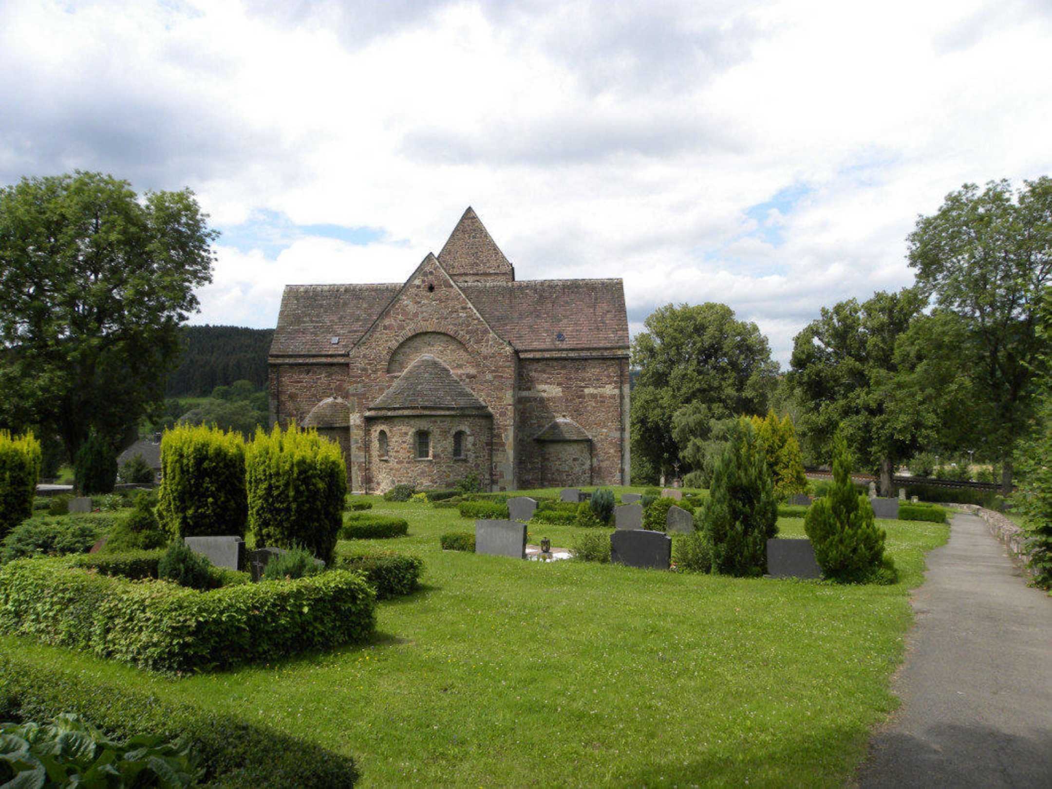 Außenansicht mit Friedhof