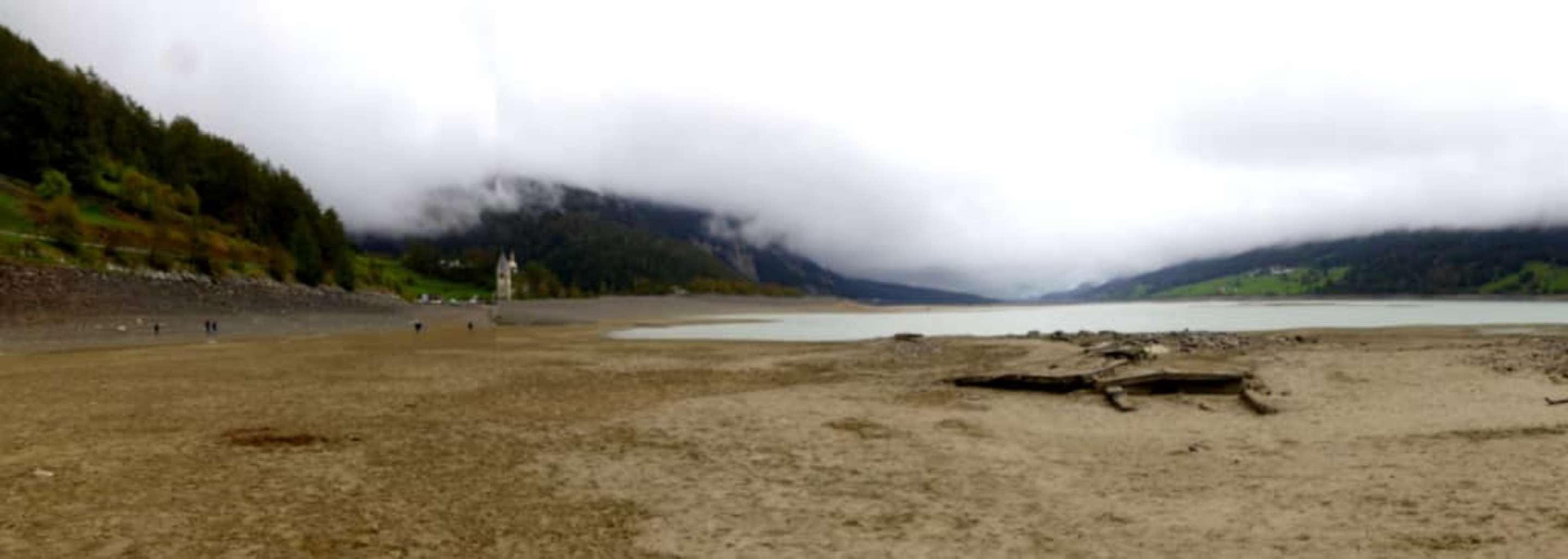 Laufen auf dem trockenen Reschensee