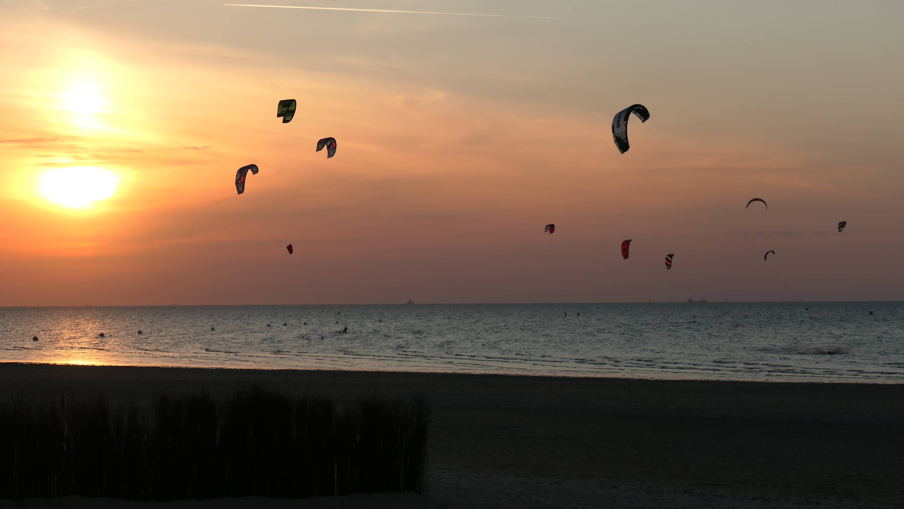 Kitesurfing am Strand von Döse bei der Kugelbake