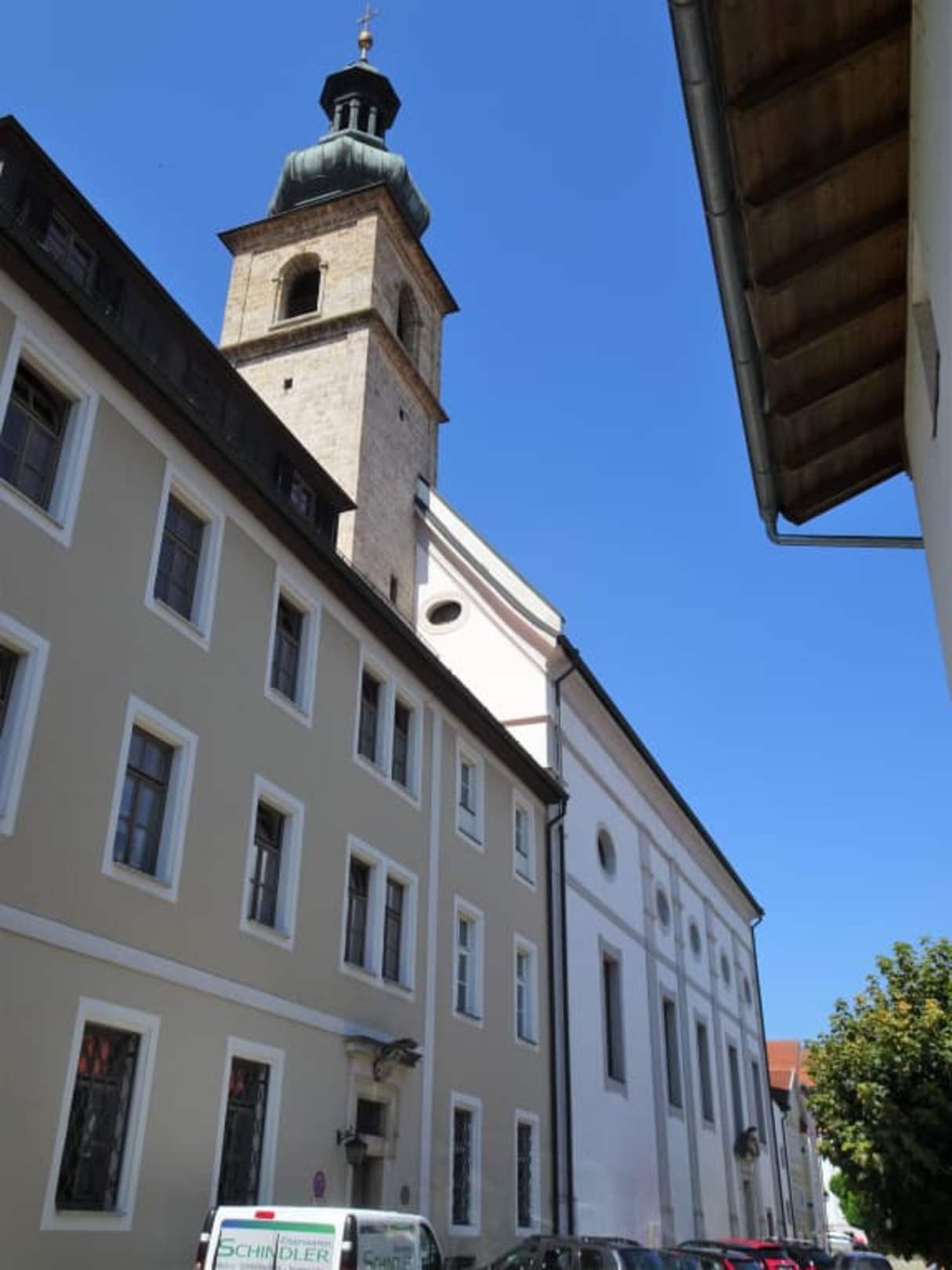 Die Klosterkirche in der Häuserzeile
