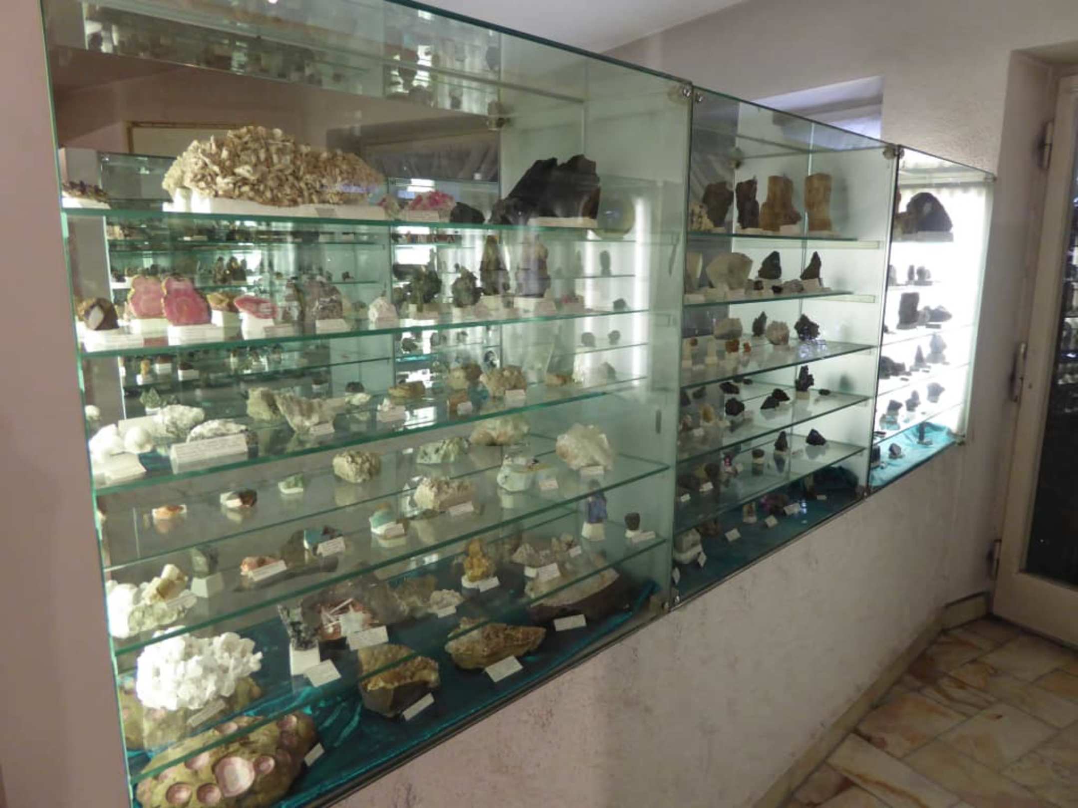 Vitrinen mit Kristallen