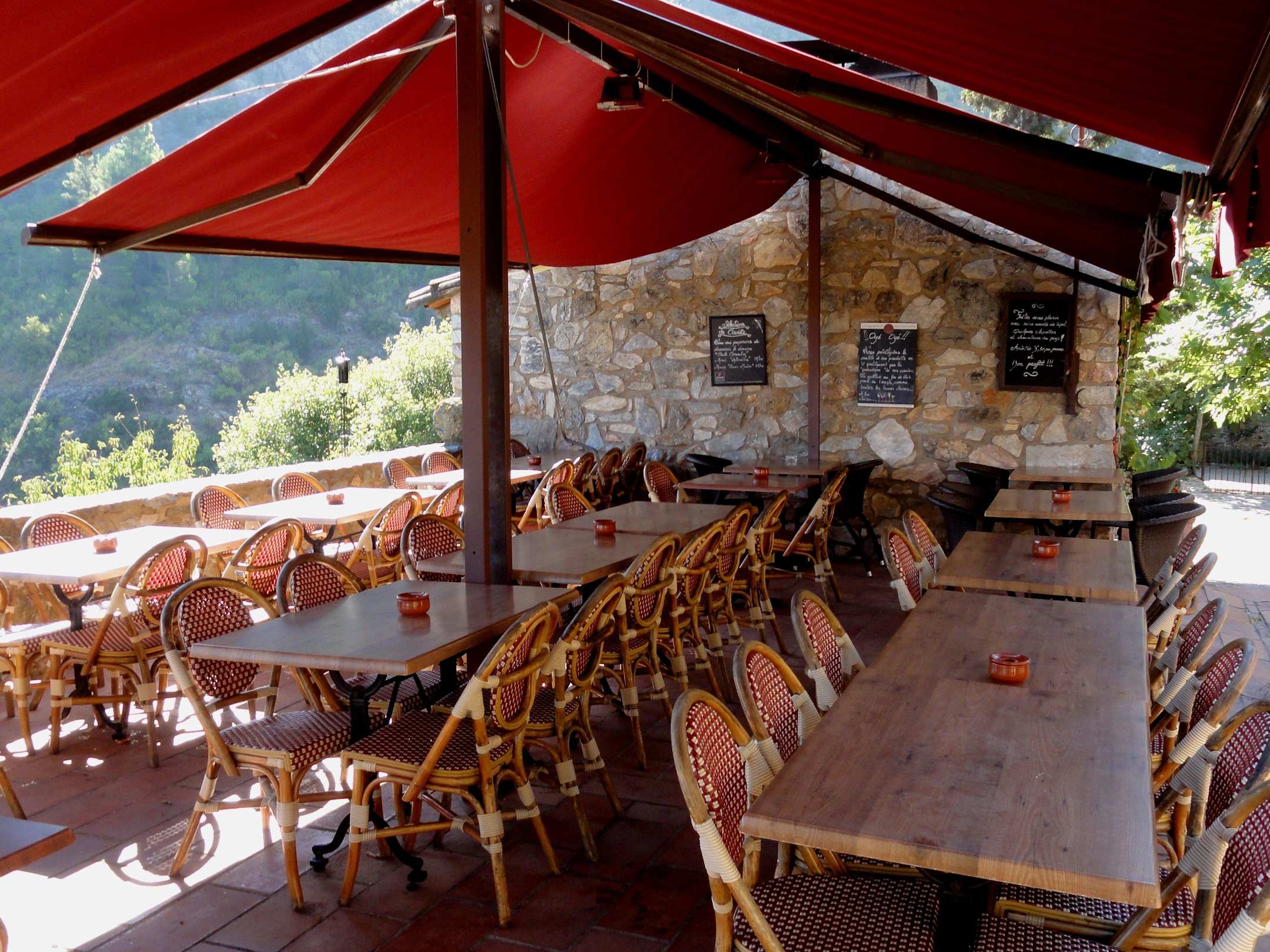 Die Außenplätze unter Sonnensegeln