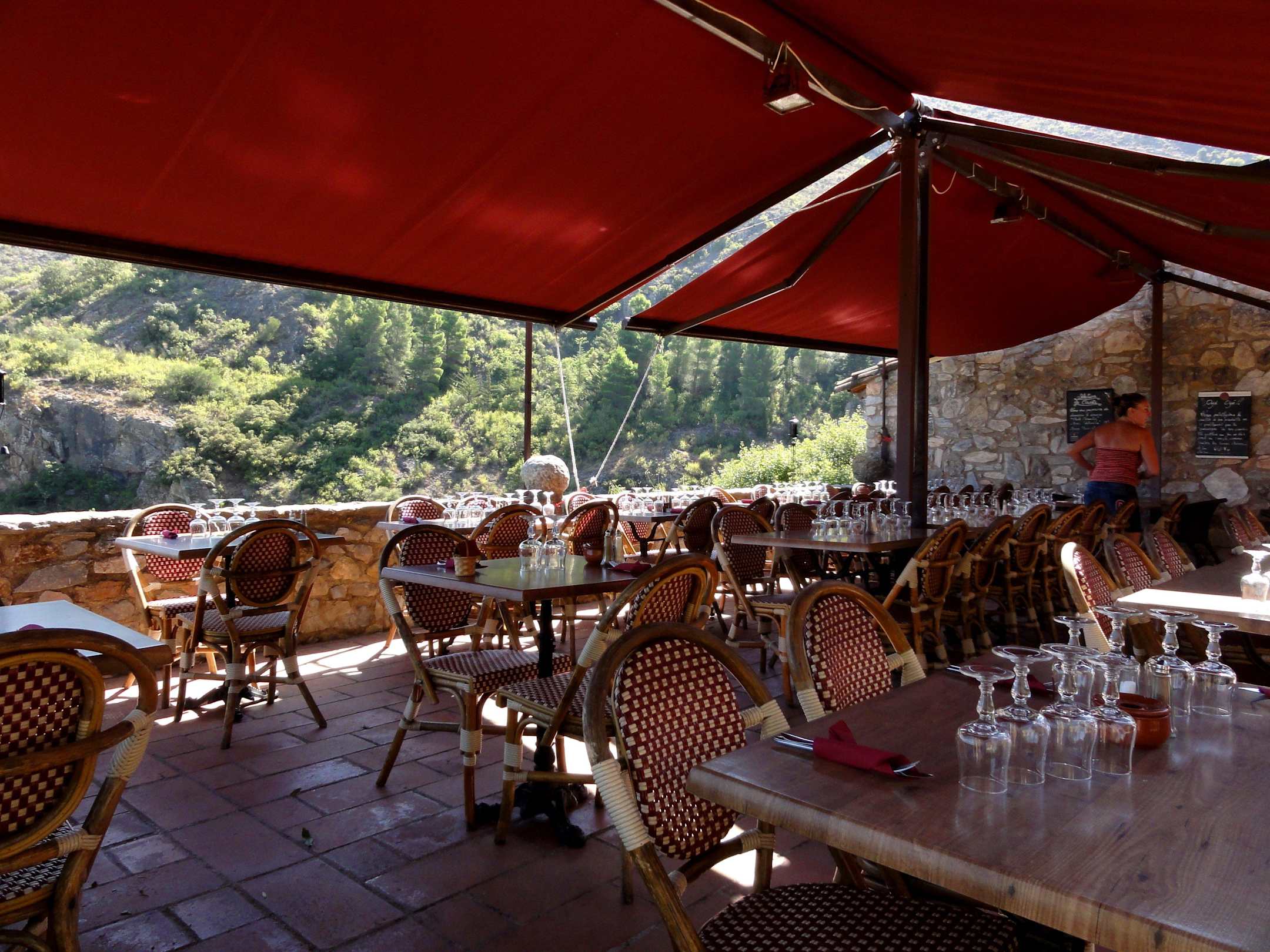 Die Außenplätze unter Sonnensegeln