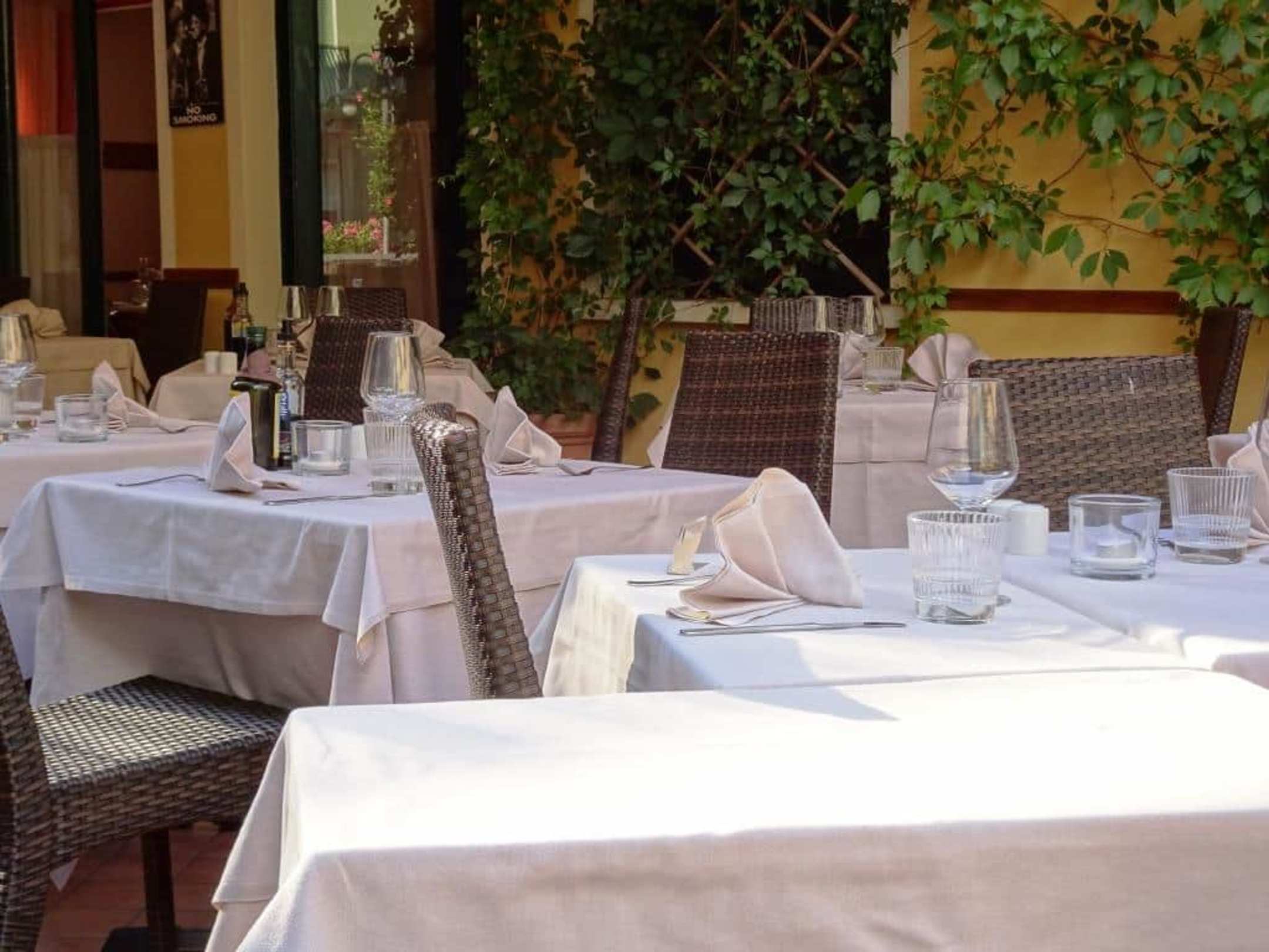 Tische auf der Terrasse des La Gondoliere