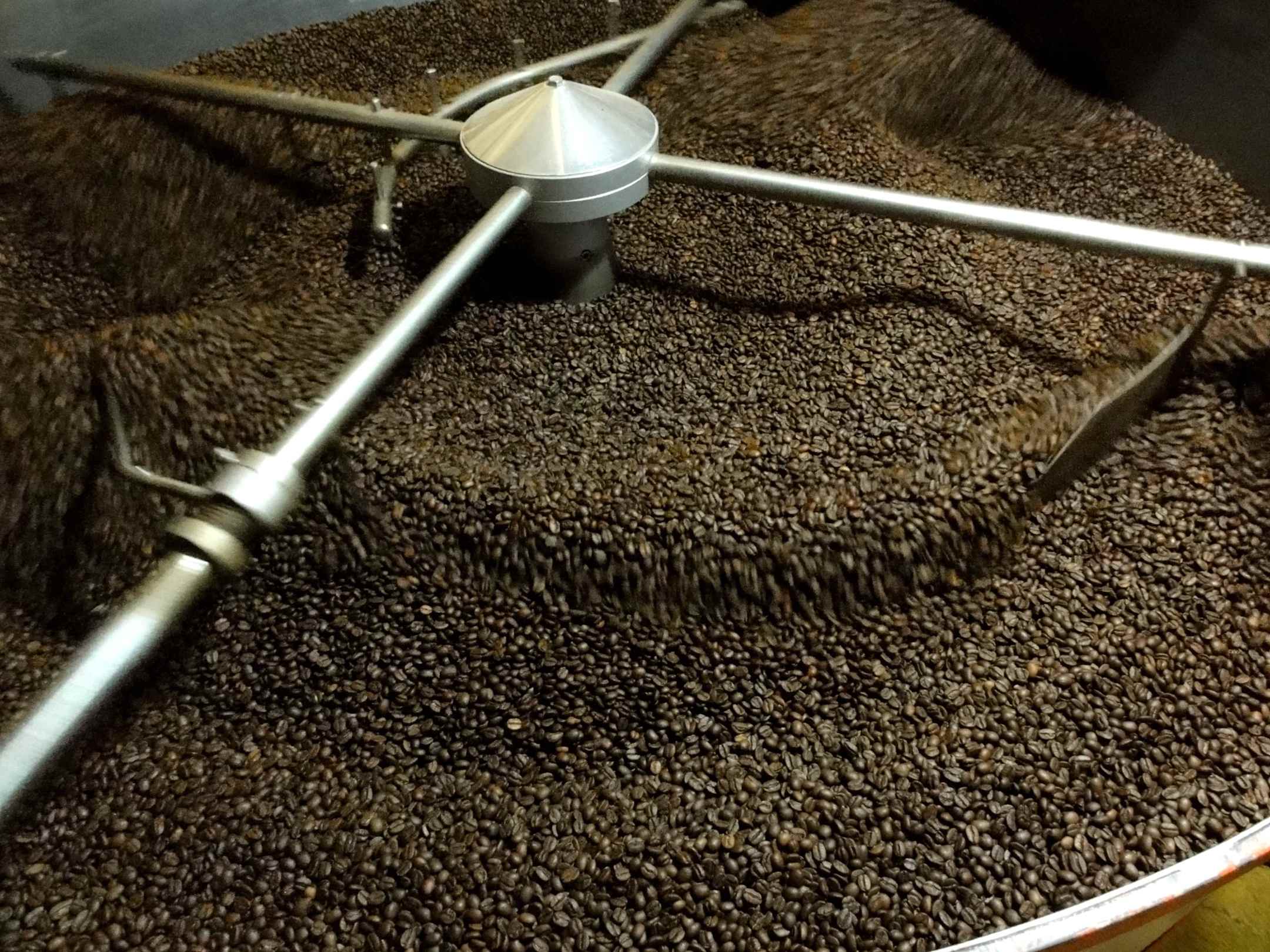 Heiße Bohnen im kalten Luftstrom