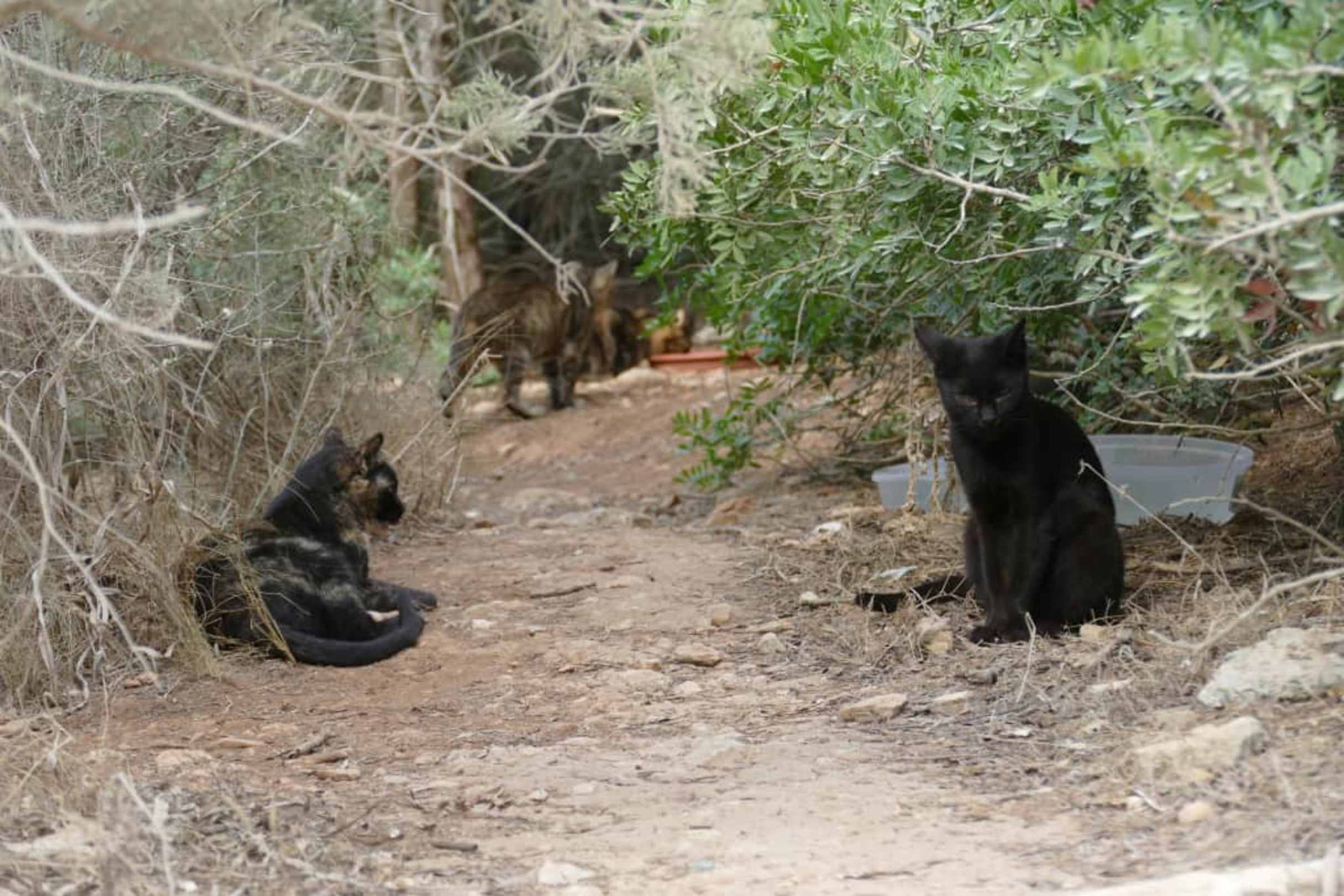 Wilde Katzen an einem Futterplatz
