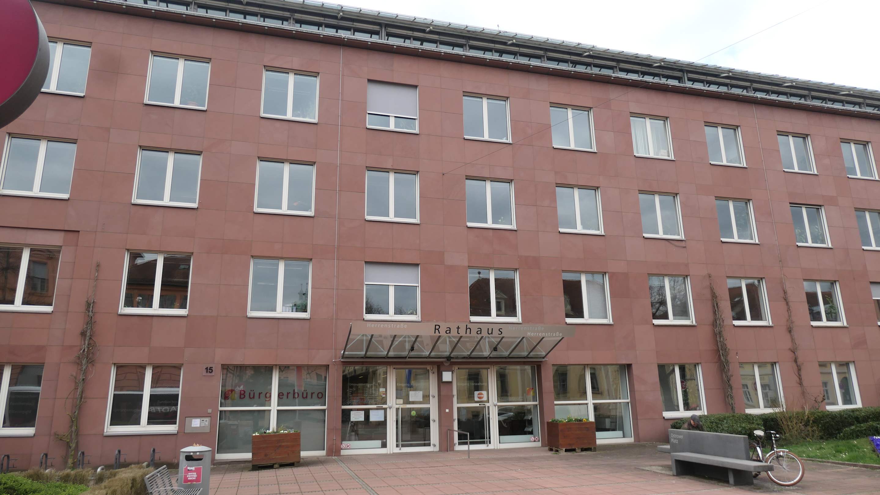 Blick zum Neuen Rathaus von Rastatt (Herrenstraße)