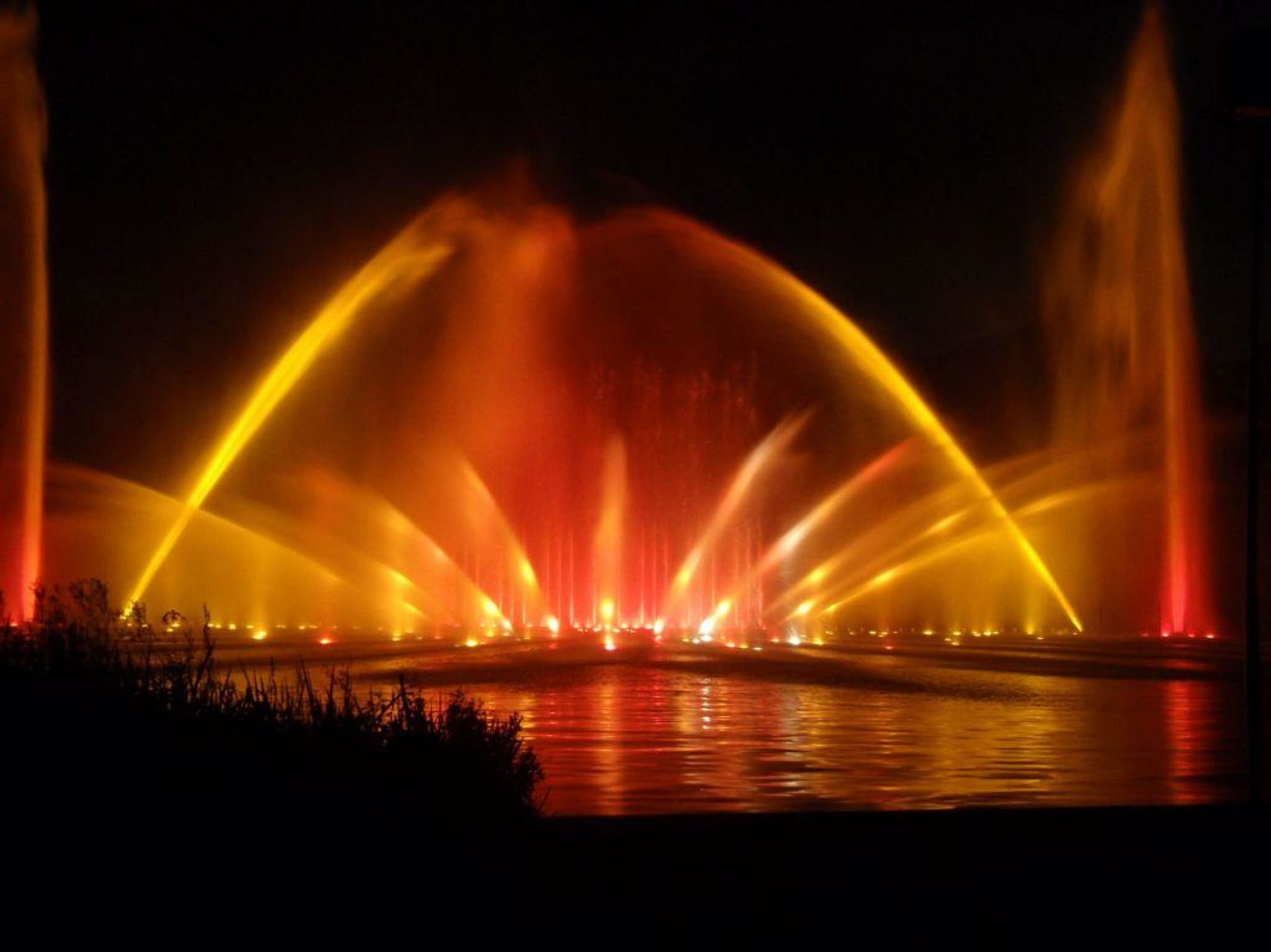 Wasserlichtorgel bei nacht