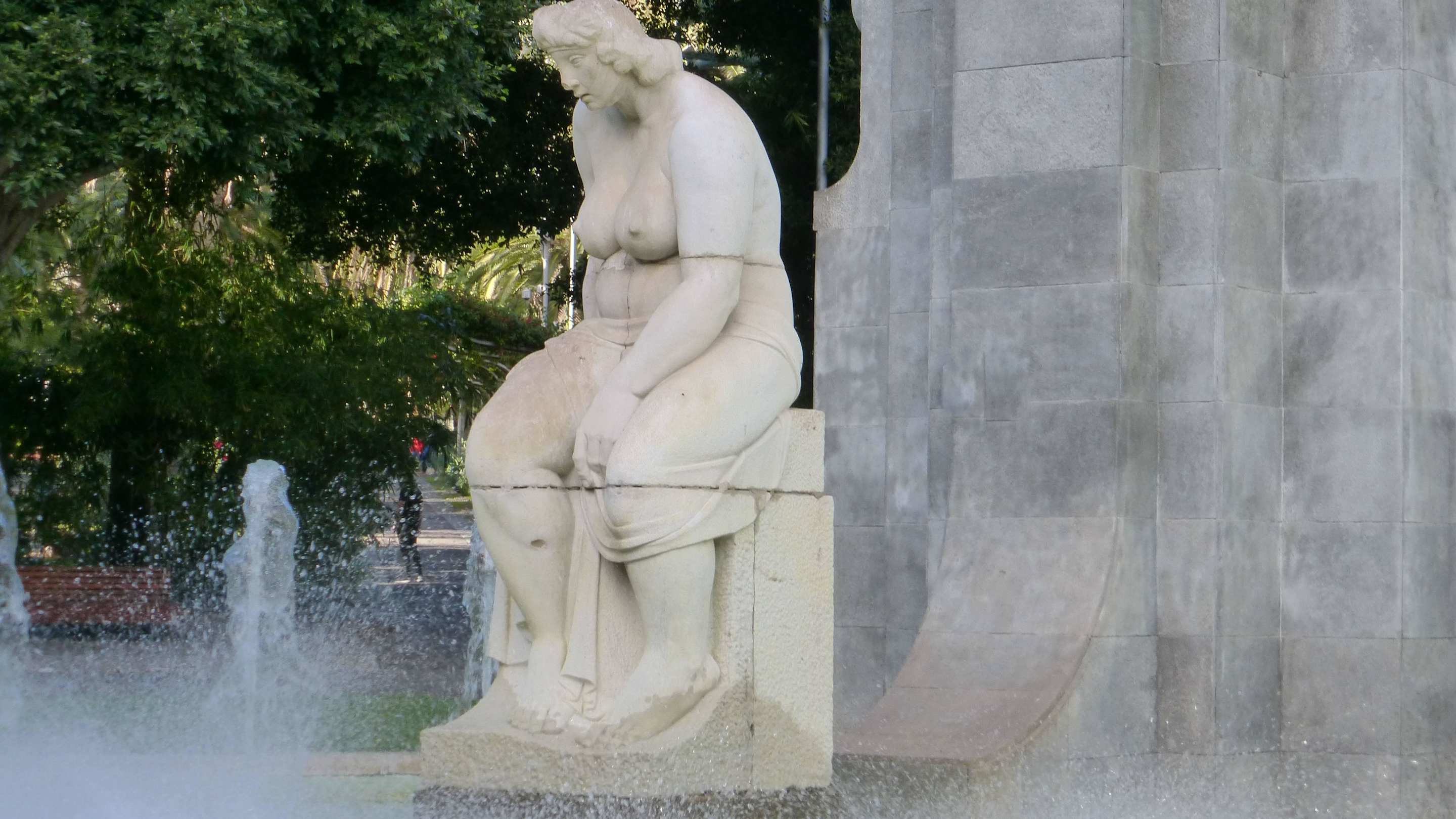 Die "Dicke Frau" im Park vor dem Denkmal