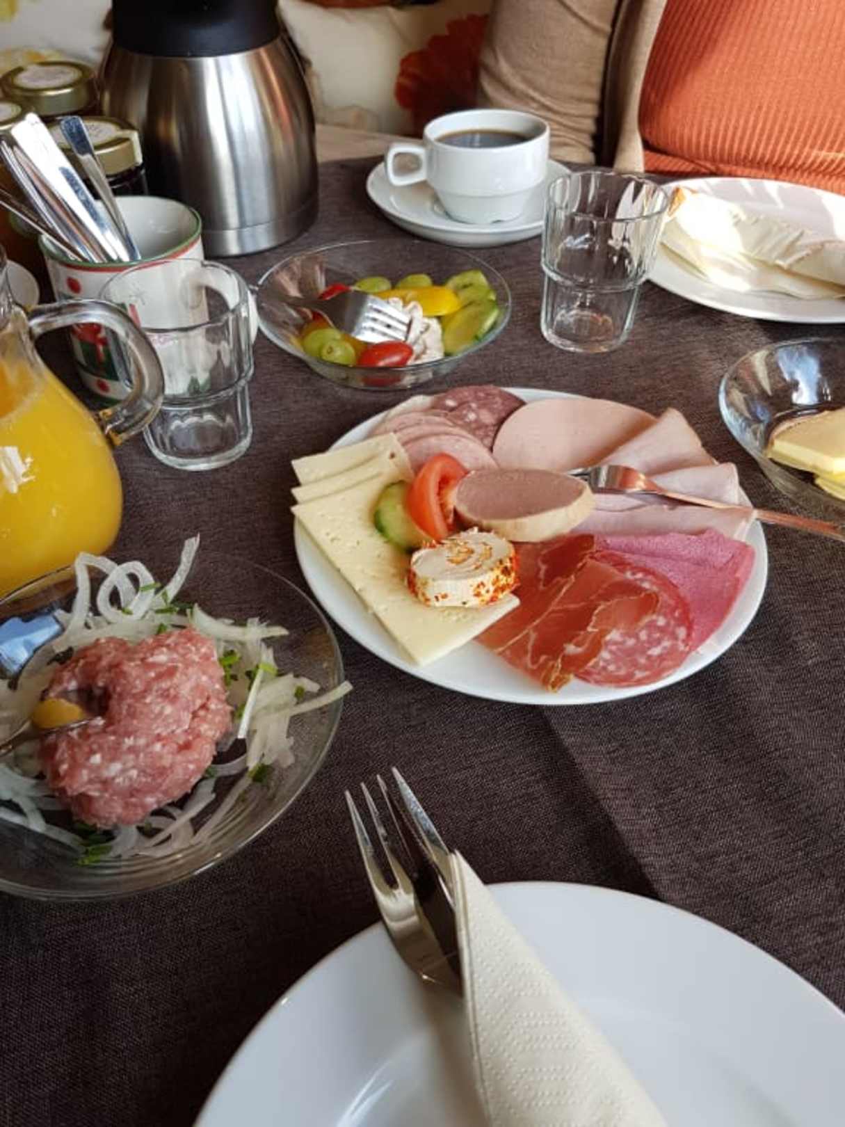 Mit Kaffee und Orangensaft