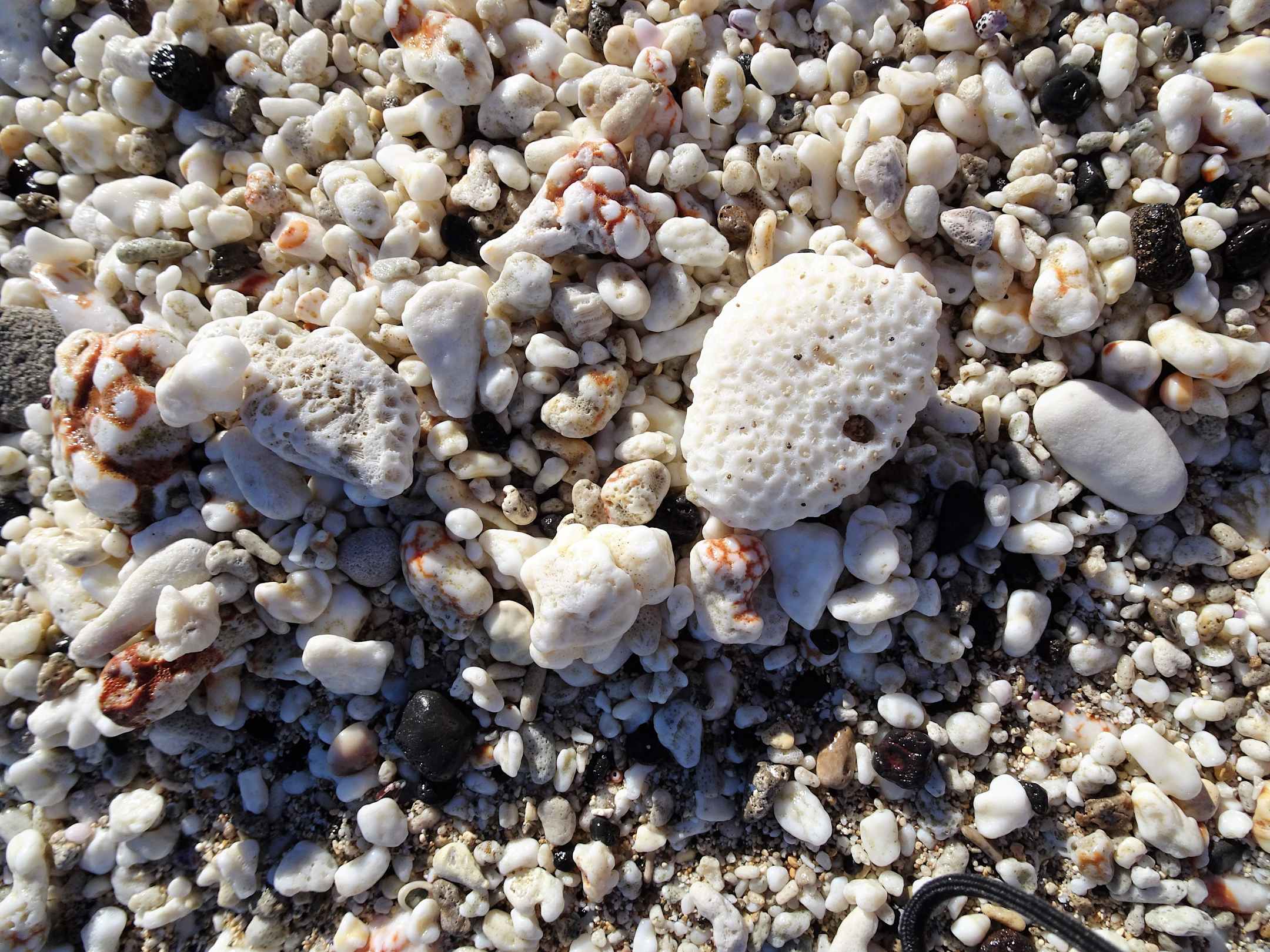 Korallenfragmente im Spülsaum des Strandes