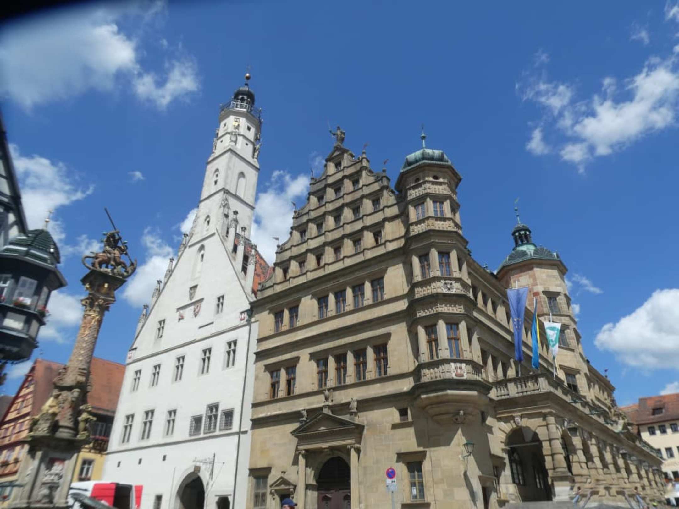 Links der gotische Rathausteil mit Rathausturm