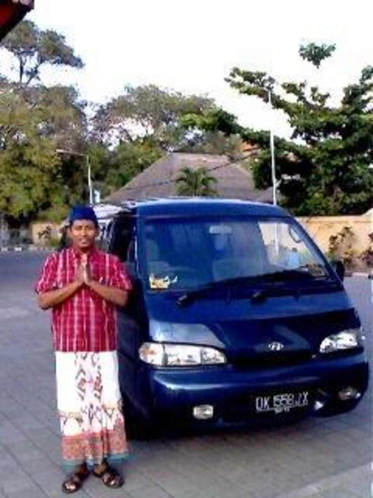 Wisnu mit seinem Auto (Vollkasko versichert)