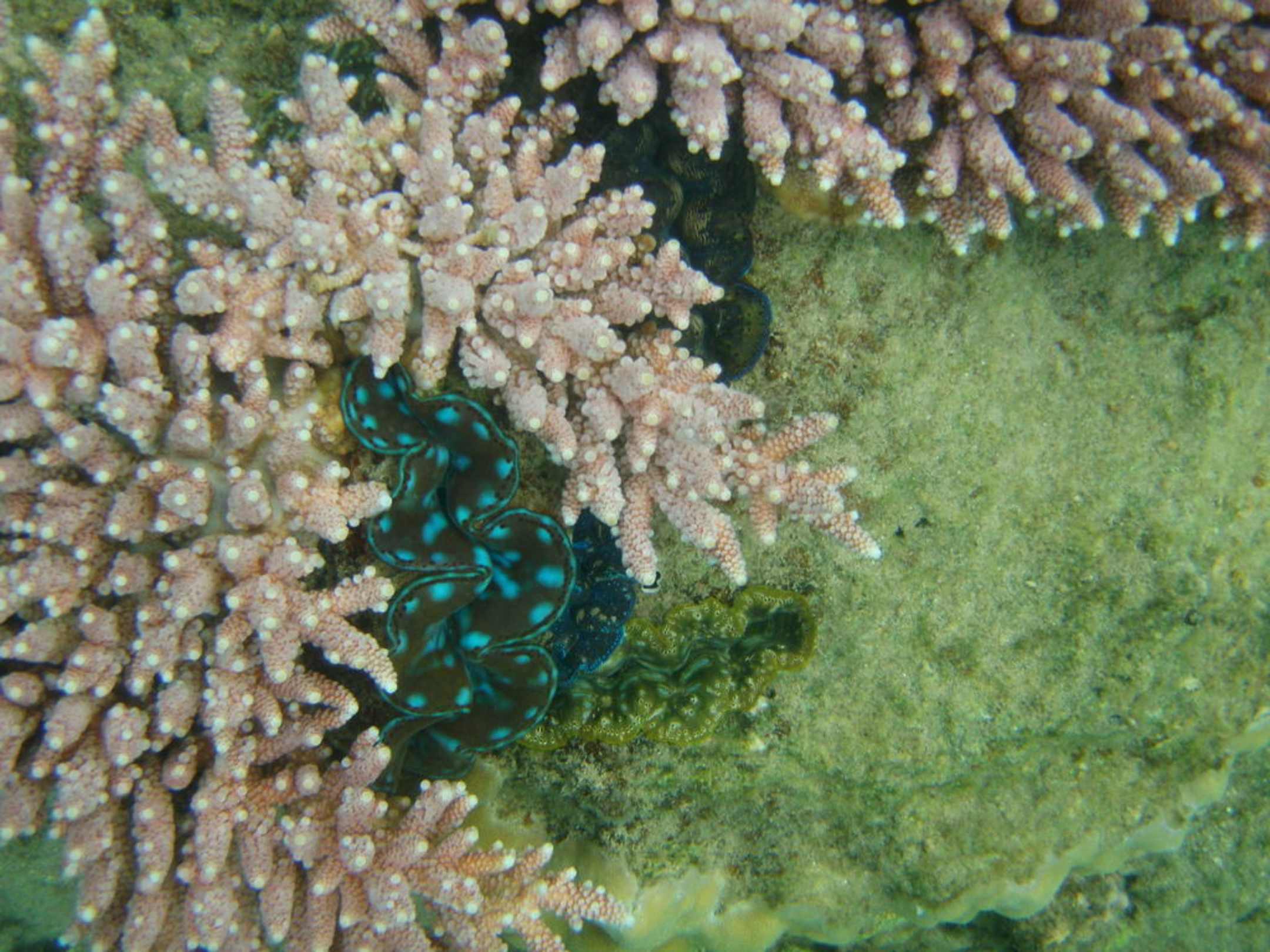 Acropora mit Muschel