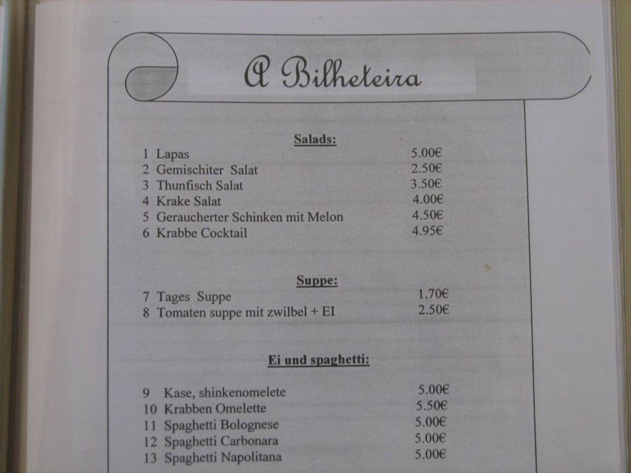 Speisekarte