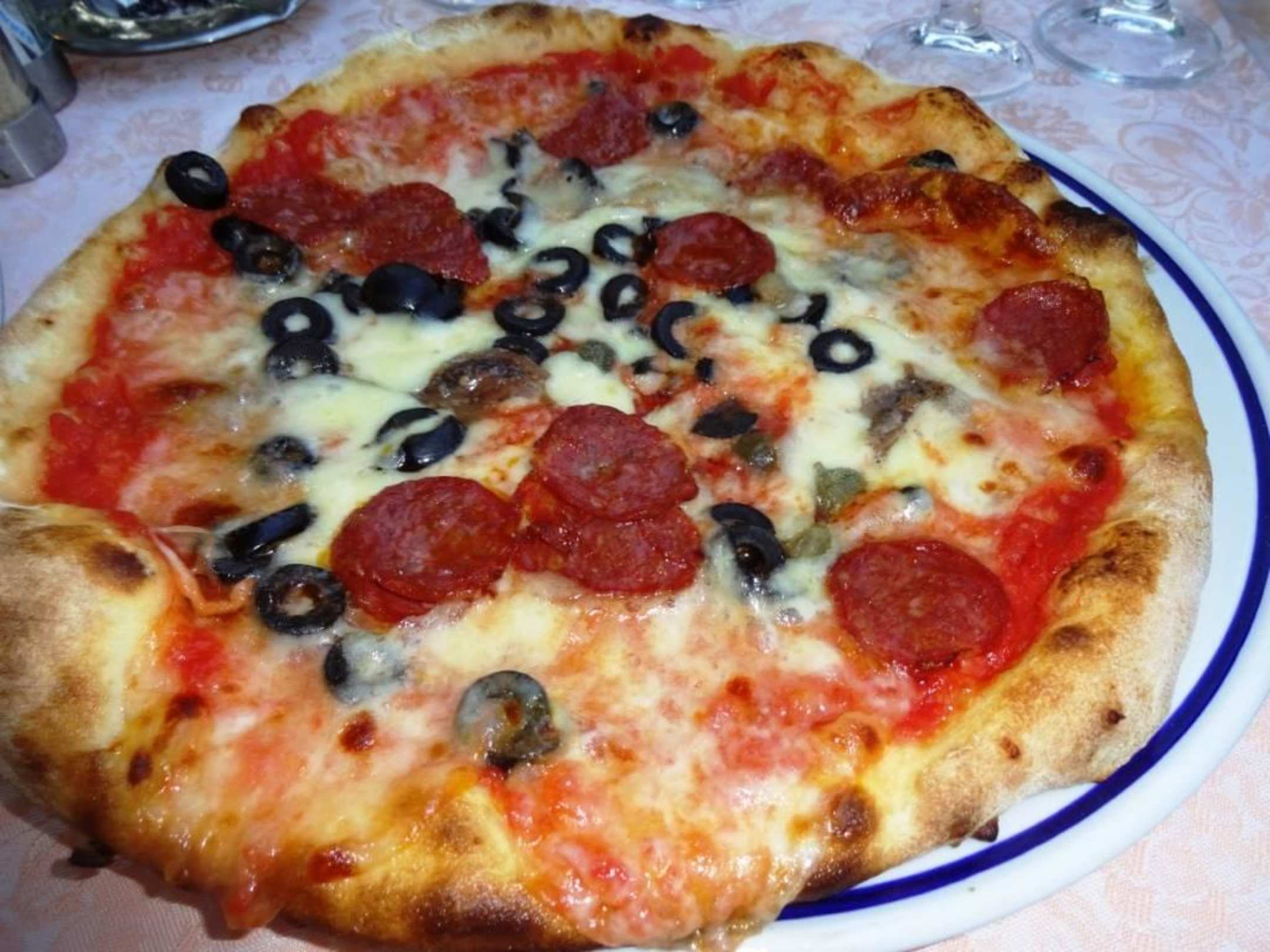 Leckere Pizza mit scharfer Salami