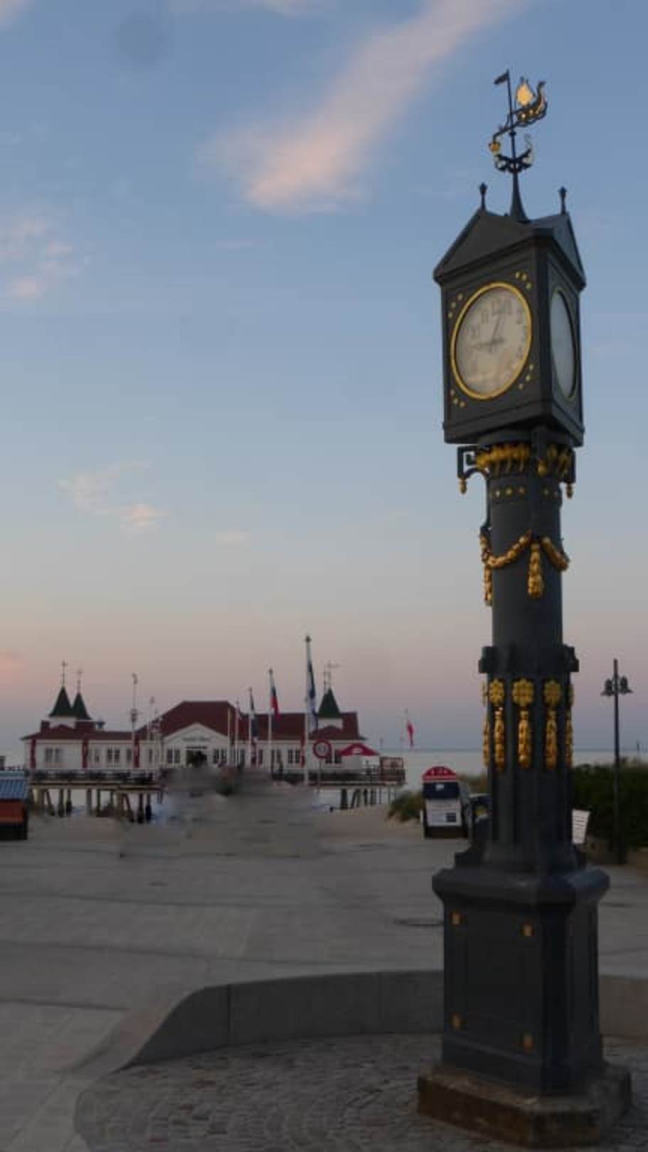 Restaurant Seebrücke, davor die historischen Uhr
