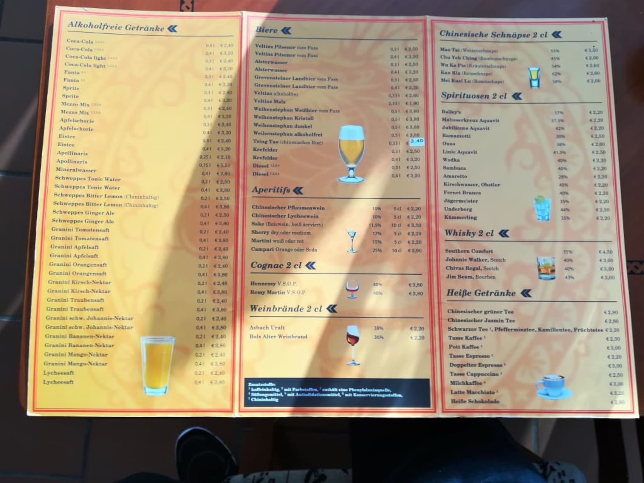 Die Getränke-Karte
