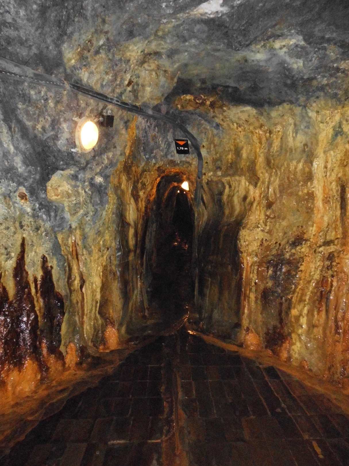 Über 100 m langer Gang mit meist nur 1,70 m Höhe