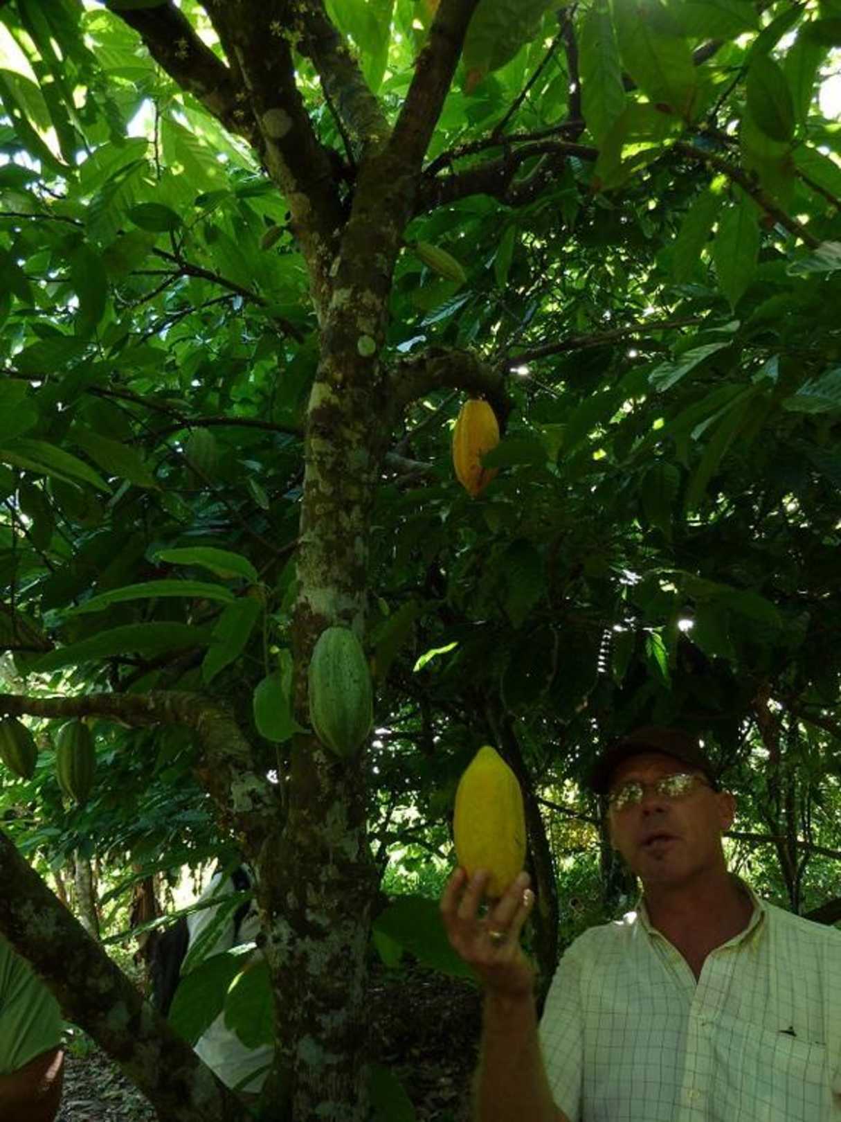 Reiseleiter mit Kakaofrucht