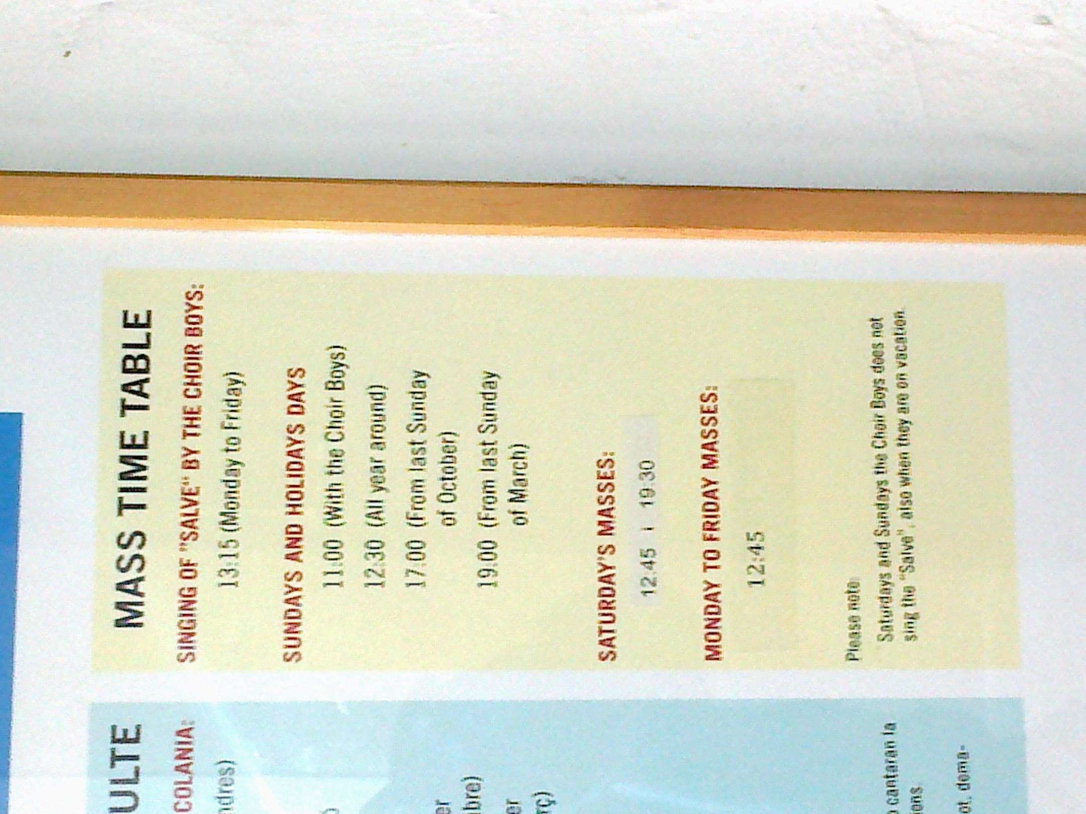 Hl. Messe Plan der Basilika mit Chorzeiten