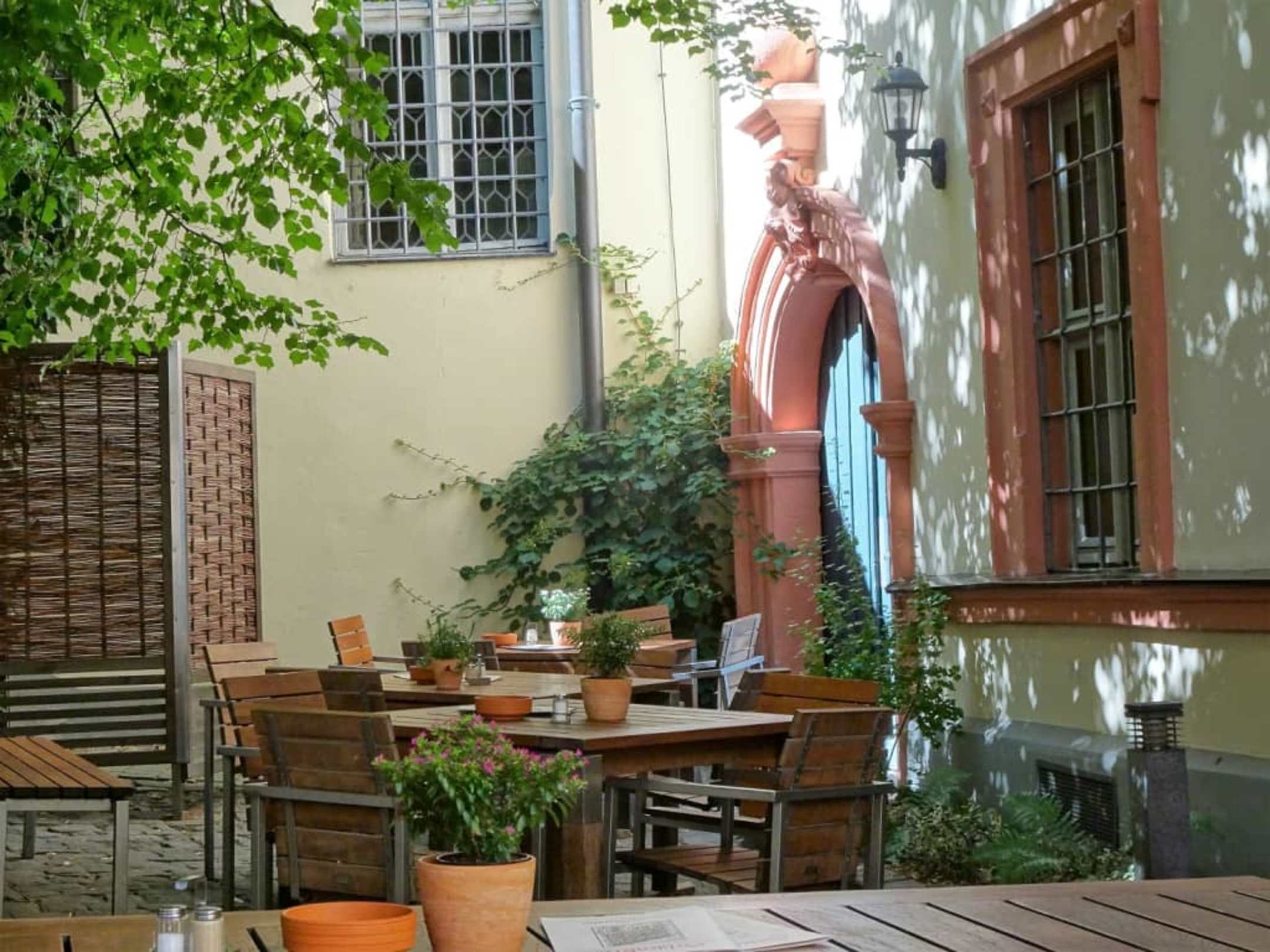 Der Biergarten des Schlenkerla hinter dem Haus
