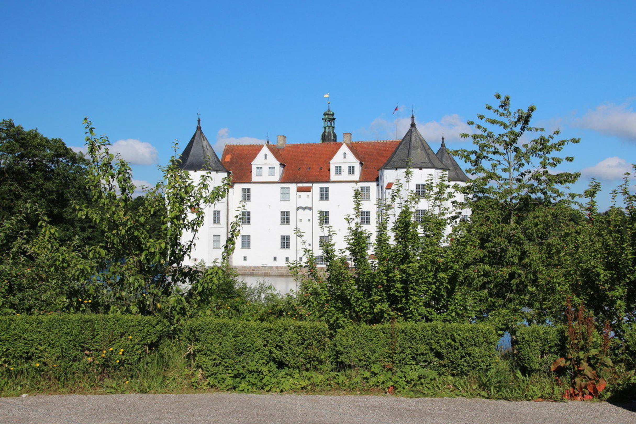 Das Glücksburger Schloss vom Parkplatz
