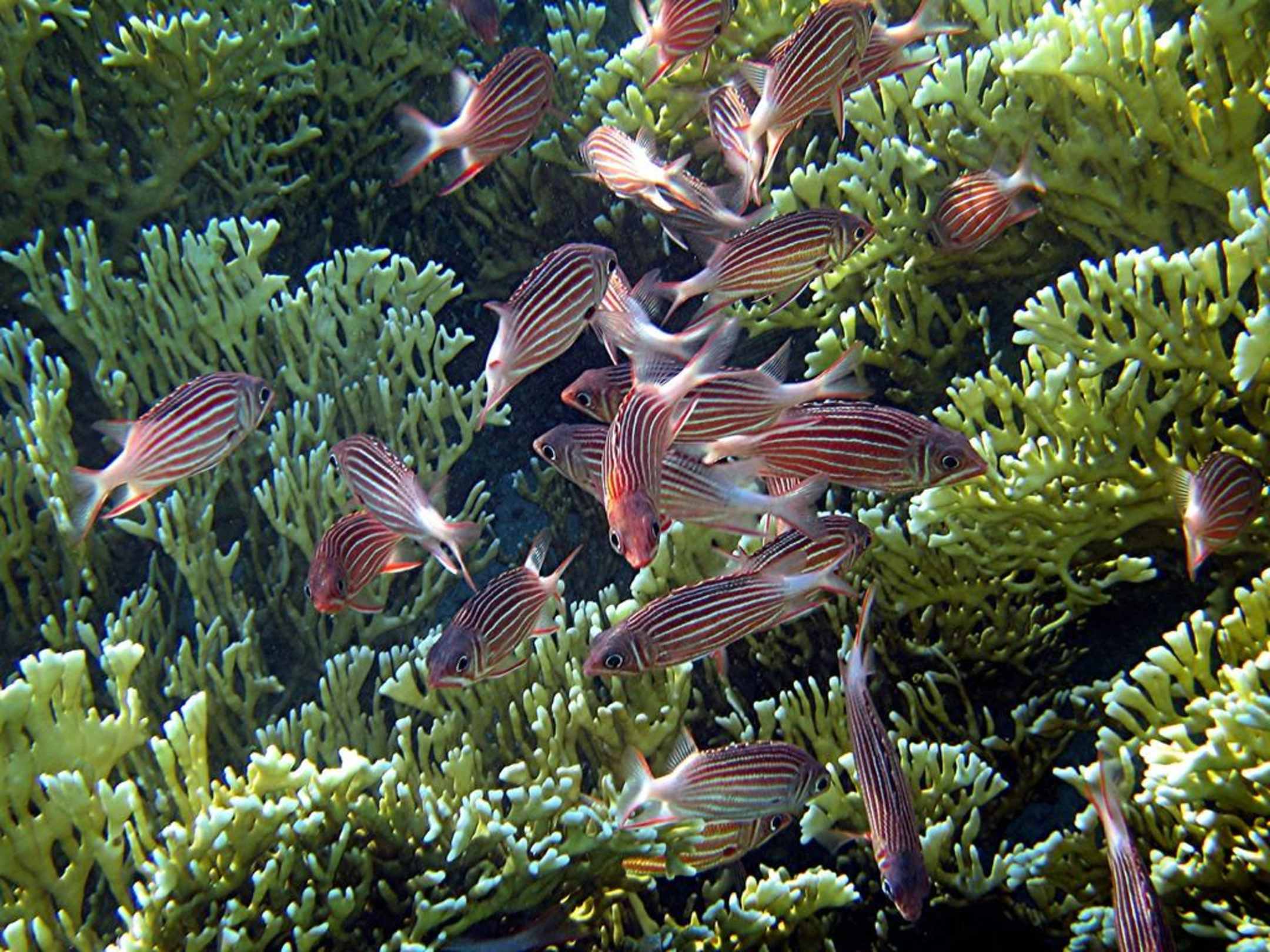 Kardinalfische in Feuerkoralle