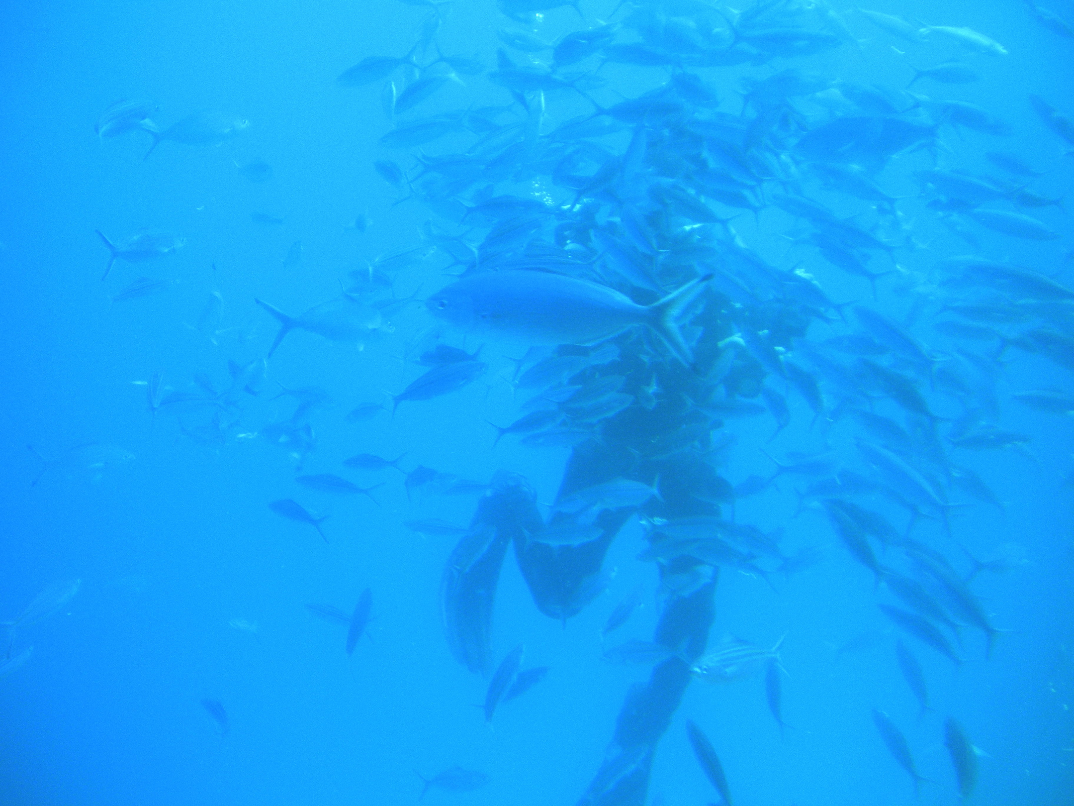 Taucher füttert Fische