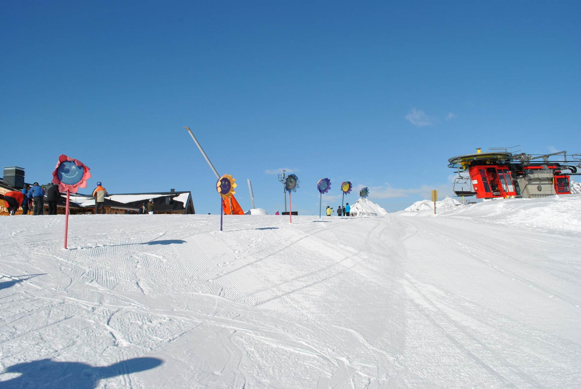 Stefans Schischule mit riesigen Blumen abgegrenzt