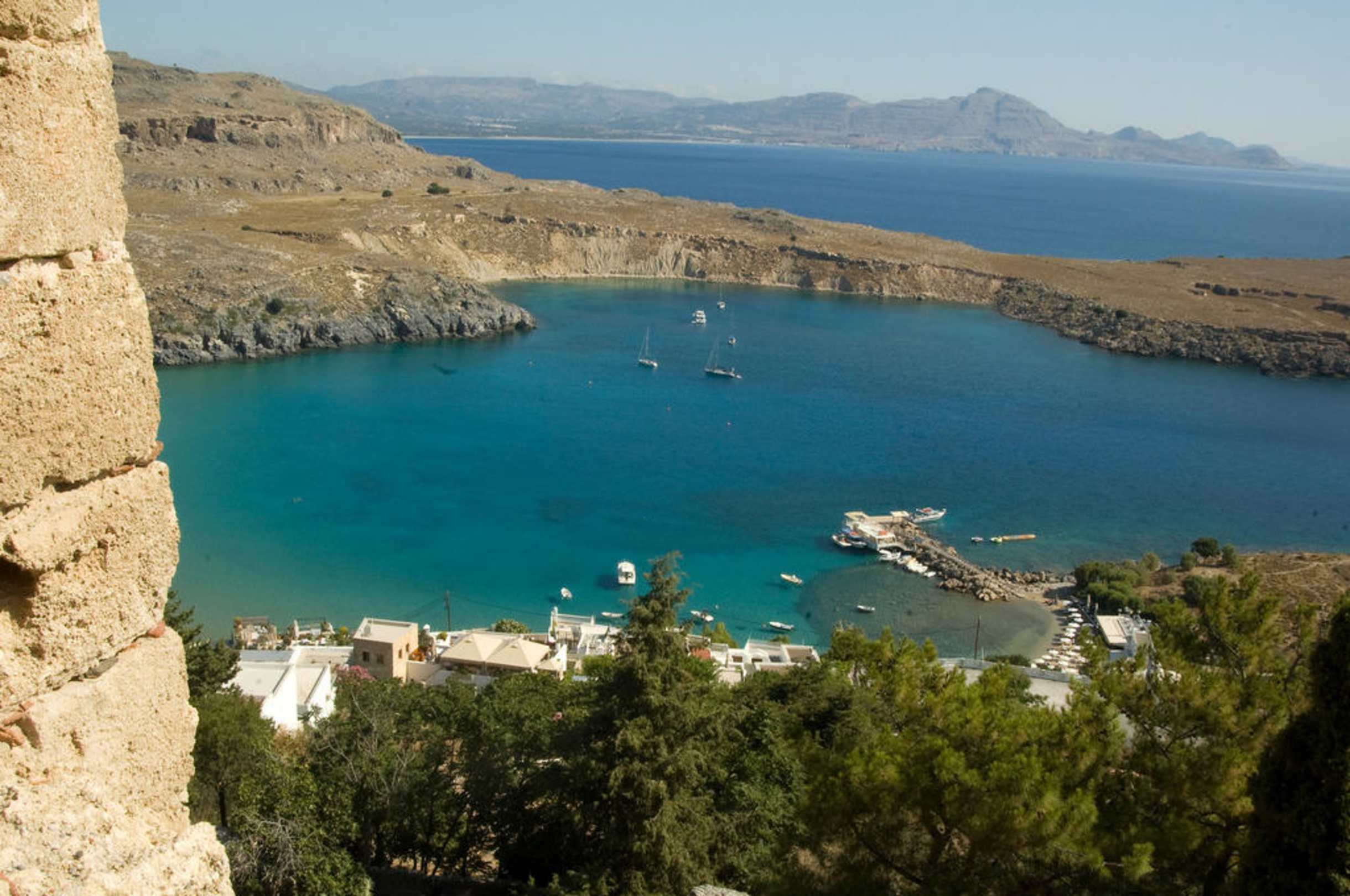 Вид на бухту с Акрополя в Линдосе