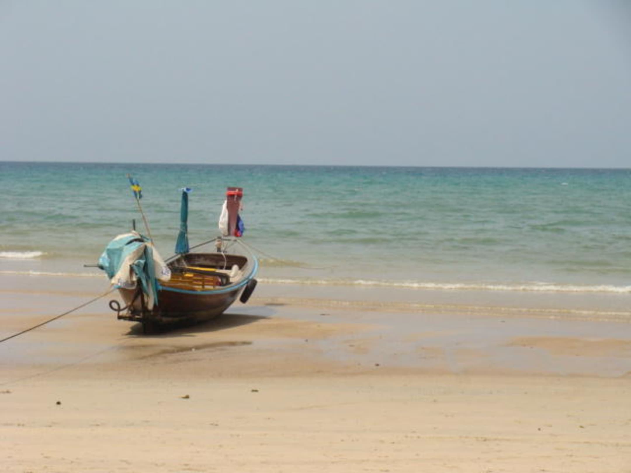 Longtailboat davanti alla spiaggia