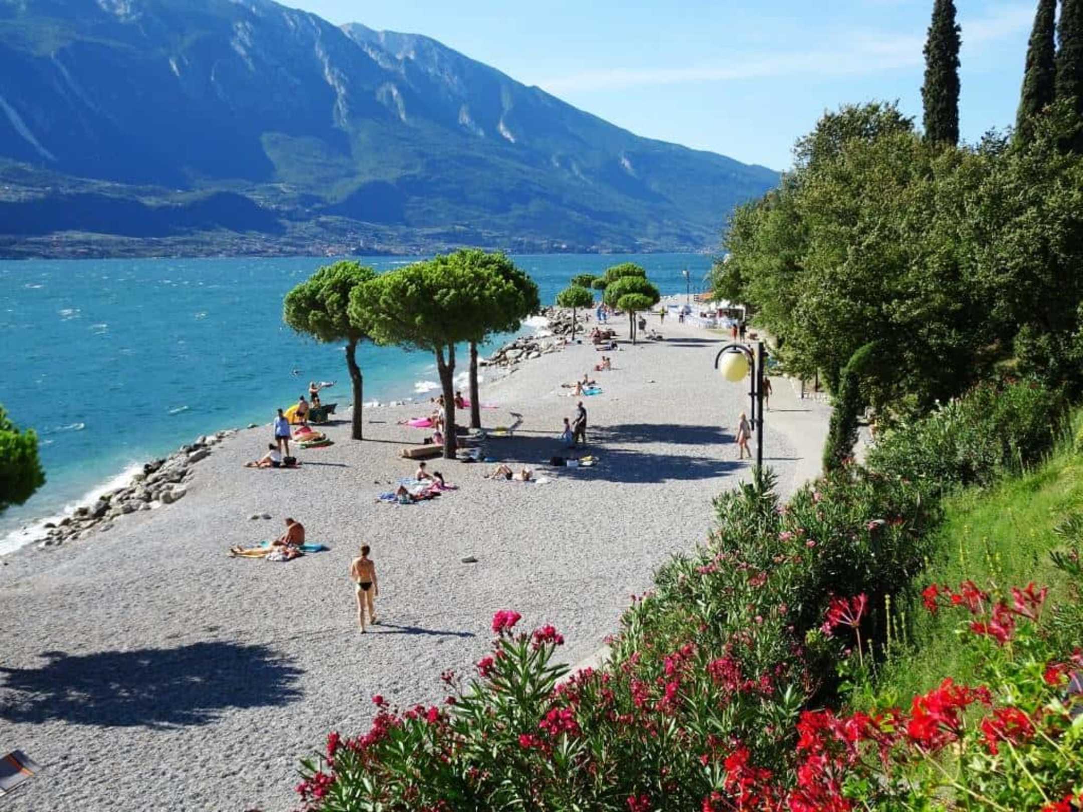 Blick auf den Strand von Limone