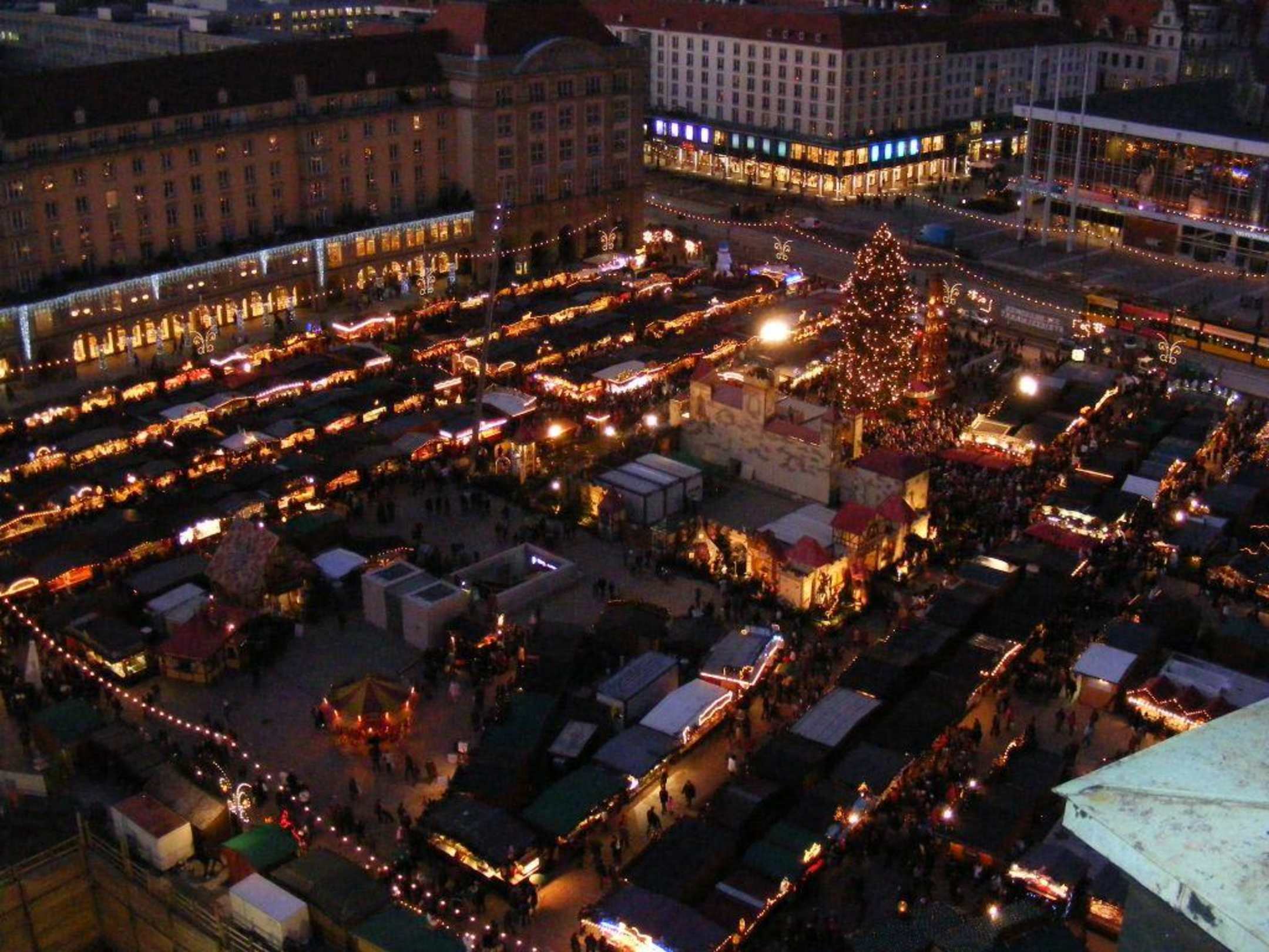 Blick vom Kreuzkirchturm auf den Striezelmarkt