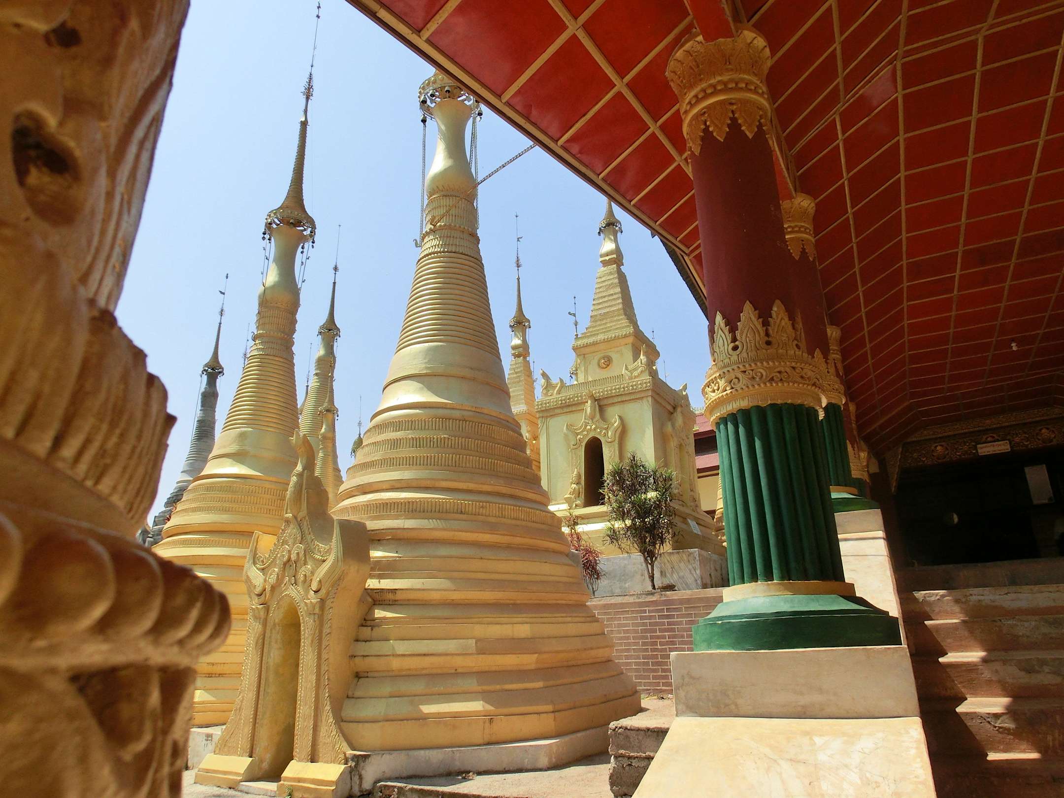 Rechts im Bild der Zugang zur Shwe Inn Tain Pagoda