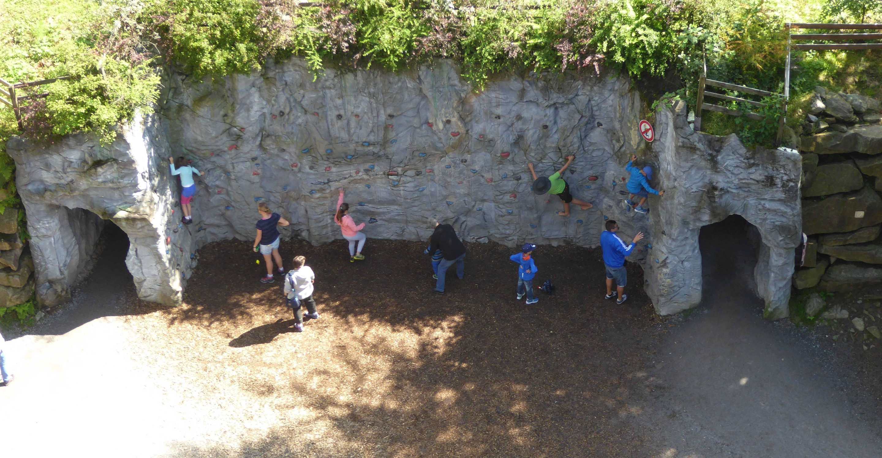 Blick von oben auf die Kletterwand