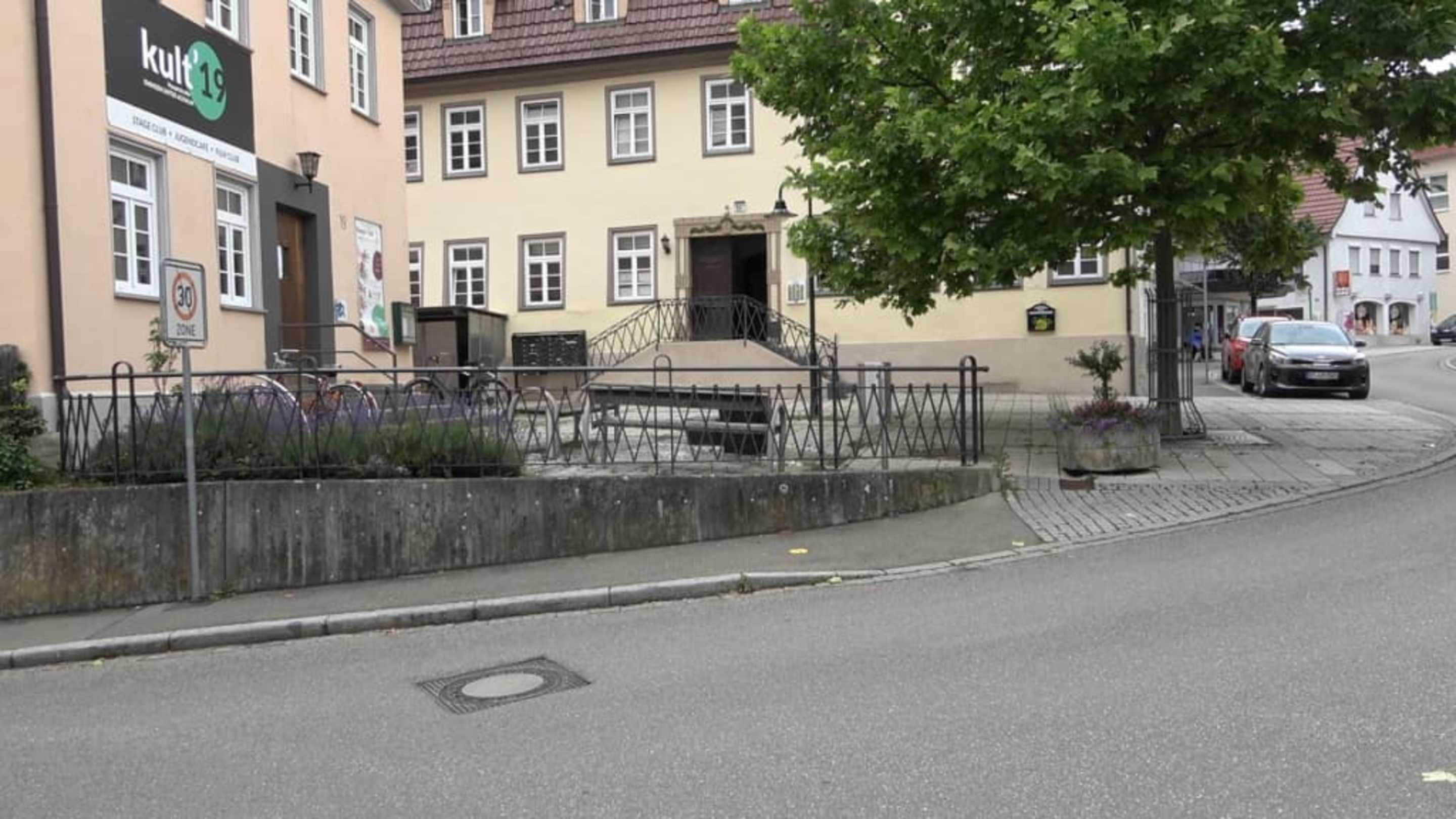Wasserspiele vor der Traube-Post