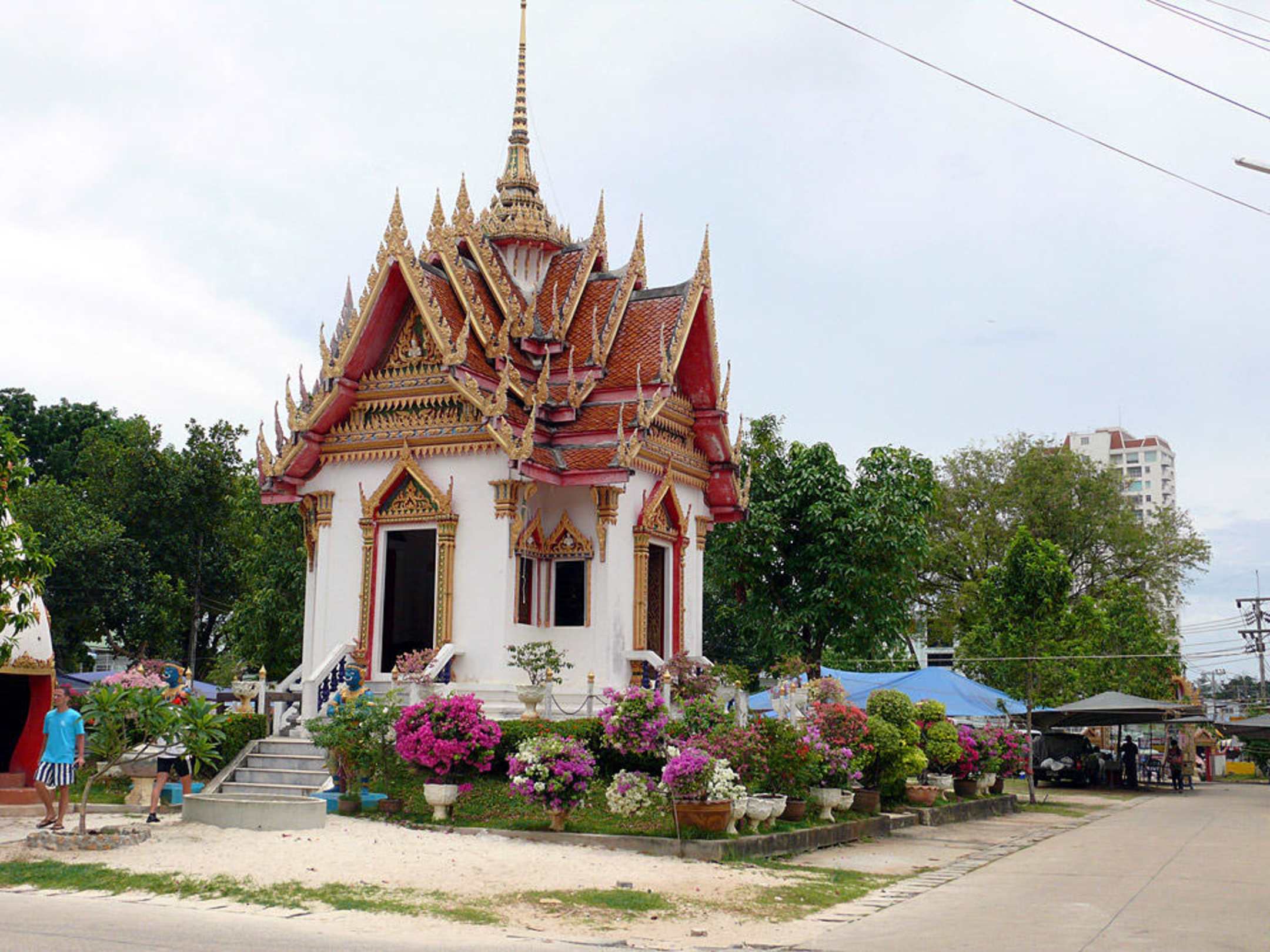 Tempelanlage in Karon mit Markt am Wochenende