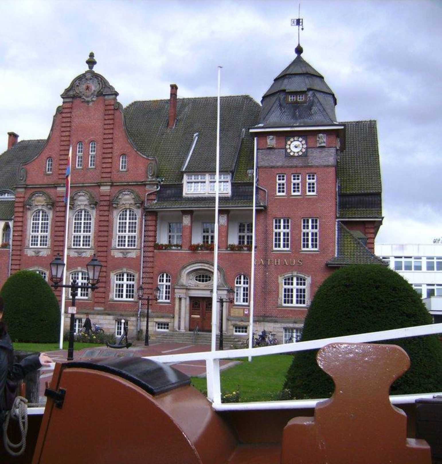 Rathaus vom Museumsschiff Friederike aus