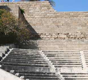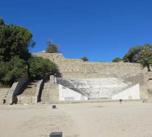 Die Akropolis von Rhodos Stadt liegt auf dem Berg "Monte Smith". Zu sehen sind leider nur noch 3 Säulen (wurden von den Italienern während der Besatzung wieder aufgestellt), aber der Blick über die Stadt entschädigt hierfür. Unterhalb der Akropolis liegt das rekonstruierte Theater. Hier findet man in ersten Reihen noch originale Sitzflächen. Neben dem Theater liegt das alte Sportstadion. Auch hier findet man noch original Reihen, welche in der Rundung liegen. Fazit: Auch wenn vieles wieder aufgebaut und rekonstruiert wurde, der Ausblick ist wunderschön.