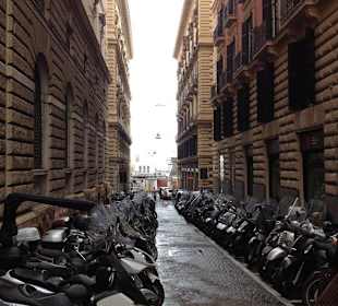 Vom Terminal am Hafenausgang ist die Altstadt nahe: Das Castel Nuovo und die dahinter liegende Stadt sind gerade vor uns und in 5 Minuten zu Fuß erreichbar. Zuerst gehen wir zum Castel Nuovo. Der Weg geht am Castel vorbei über eine langgezogene beplankte Behelfsbrücke, daneben ist eine riesige Tief-Baustelle. Auf diesen Planken haben sich unzählige Taschenverkäufer niedergelassen, so dass es eng wird, wenn sich Menschen entgegenkommen. Die Polizei geht auf den Straßen vor der Brücke lang, scheint aber diesen Weg zu meiden. Wie war das: Sind wir nicht in Europa? Da müssen doch alle Markenhersteller eine Wutbratze kriegen, wenn die italienische Regierung das alles so laufen lässt… Auf der Eingangsseite wirkt das Castel, wie aus ganz unterschiedlichen Stücken zusammengesetzt. Zwischen 3 grau-schwarzen Türmen steht eine sandsteinfarbene Mauer und ein marmornes Portal. Das Portal ist von oben bis unten reich verziert, sowohl an der Front, als auch im Durchgang. Dahinter sind zwei schwere Türen, die mit jeweils 3 großen Metallplatten bestückt sind, die ebenfalls mit detaillierten Kriegsszenen verziert sind. Einige davon sind aber leider erheblich beschädigt. Wir wenden uns dann der Stadt zu, um einfach einen Eindruck von Neapel zu bekommen. Zwischen den Fassaden der Häuser stolpert man immer wieder über Brunnen, historische Stätten, kleine historische Kirchen. In den kleinen Gassen stehen in langen Reihen Motorroller und überall, wo man in eine Gasse schaut, kann man am Ende weitere schöne Fassaden sehen. Insgesamt sieht die Stadt sehr viel sauberer aus als gestern Palermo und es lohnt sich tatsächlich, einfach durch Neapel zu schlendern.