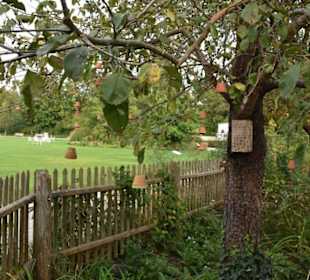 Dafür, dass der Eintrittspreis nicht mehr als 3,50 Euro beträgt, erwartet man zunächst nicht viel. Jedoch - der Garten ist tatsächlich recht groß und hübsch angelegt, mit vielen offenen Pavillions, Stelen, Kunstobjekten, einladenden Sitzplätzen und Grünflächen zum Entspannen. Zu vielen verschiedenen Themen sind einzelne Bereiche vorhanden - neben dem hübschen Japangarten sowie prächtigen Rosen- und Staudenanlagen liegt ein großer Schwerpunkt auf Haus- & Kräutergarten, Heil- Färbepflanzen, Gemüse und anderen Nutzarten. Hier allerdings sieht alles ziemlich verwuchert und verwildert aus. Unter großen alten Kastanienbäumen lädt ein kleiner Schnellimbiss mit Biergarten zum Verweilen.