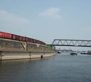 Wir haben bei strahlendem Sonnenschein mit der "Gerhard Mercator" von der weissen Flotte die Hafenrundfahrt beginnend am Anleger Schifferbörse in Duisburg Ruhrort gemacht. Die Fahrt beginnt eigentlich am Schwanentor im Duisburger Innenhafen, hier stiegen auch die meisten Leute ein- und aus. Der Vorteil war für uns, dass das Schiff dann leer wurde und wir einen der begehrten Außenplätze bekamen. Von dort aus fuhren wir durch das Marientor (Hochwasser-Sperrtor) weiter durch den Außenhafen in Richtung Rhein. Nach ca. 3 km Fahrt rheinabwärts gelangen wir zum Ruhrorter Hafen. Dort angekommen ging es durch diverse Hafenbecken und legten anschließend wieder an der Schifferbörse in Duisburg-Ruhrort an. Die Hafenrundfahrten werden von den Schiffsführern LIVE kommentiert, es gibt Service zu normalen Preis an Bord von einer kleinen Karte mit Kleinigkeiten zu Essen und Getränken. Hauptsaison: 26. März - 06. November 2011 - Fahrten täglich von » Schwanentor bis » Schwanentor 1. Fahrt 11:00 Uhr - 13:00 Uhr 2. Fahrt 13:15 Uhr - 15:15 Uhr 3. Fahrt 15:30 Uhr - 17:30 Uhr von » Schifferbörse bis » Schifferbörse 1. Fahrt 12:15 Uhr - 14:30 Uhr (inkl. 15 Min. Aufenthalt Schwanentor) 2. Fahrt 14:30 Uhr - 16:45 Uhr (inkl. 15 Min. Aufenthalt Schwanentor) Die Hafenrundfahrten dauern jeweils ca. 2 Stunden und enden immer am Ausgangspunkt! Fahrpreise: Erwachsene: 12,00 €, Kinder (4-13 Jahre): 6,00 € Kleinfamilie (1 Erw. + max. 3 Ki.): 22,00 € Familie (2 Erw. + max. 3 Ki.): 29,00 €