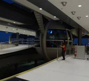 Im Frühjahr 2014 eröffnete das Riesenrad High Roller im The Linq-Komplex in Las Vegas. Bei den letzten Vegas-Besuchen konnten wir die Fortschritte der Baustelle immer wieder beobachten, sodass wir nun einfach neugierig waren. Wir kannten bereits den Blick vom Eiffelturm des Paris-Hotels und den von der Voodoo Lounge im Rio-Hotel. Letzteres ist nach wie vor mein Favorit. Das ist ungeschlagen der beste Blick auf den Las Vegas-Strip, hinzu kommt, dass man dort keine störende Scheibe hat. Obwohl wir nur wenige Wochen nach Eröffnung dort waren, war wenig los und wir konnten gleich in eine Kapsel gehen und hatten keinerlei Wartezeit. Wir hatten im Voraus Tickets über Internet reserviert und die Abendstunden gewählt. Letzteres wäre auch meine Empfehlung für Sie, da der Strip bei Nacht erst wirklich beeindruckend wird mit all seinen Lichtern. Das Abendticket kostete pro Person etwa 30 $ - ein wirklich stolzer Preis. Die Fahrt dauert etwa 30 Minuten. Der Blick auf den Strip ist sicher gut, aber kommt nicht an den der Voodoo Lounge heran. Störend ist natürlich die Scheibe, durch die man leider keine 100 % guten Fotos machen kann. Stative sind leider nicht erlaubt, was die Sache zusätzlich erschwert. Wenn sie Riesenräder mögen oder sonst schon alles in Vegas gesehen haben, kann man die Fahrt im High Roller schon machen. Meiner Meinung nach haben Sie nicht viel verpasst, wenn Sie nicht hier waren.